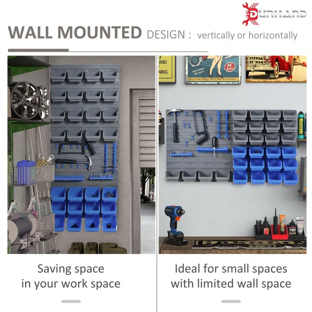 44 Pcs Wall Mounted Pegboard Tool Organizer Rack Kit With Various Sized Storage Bins, Pegboard And Hooks, Blue