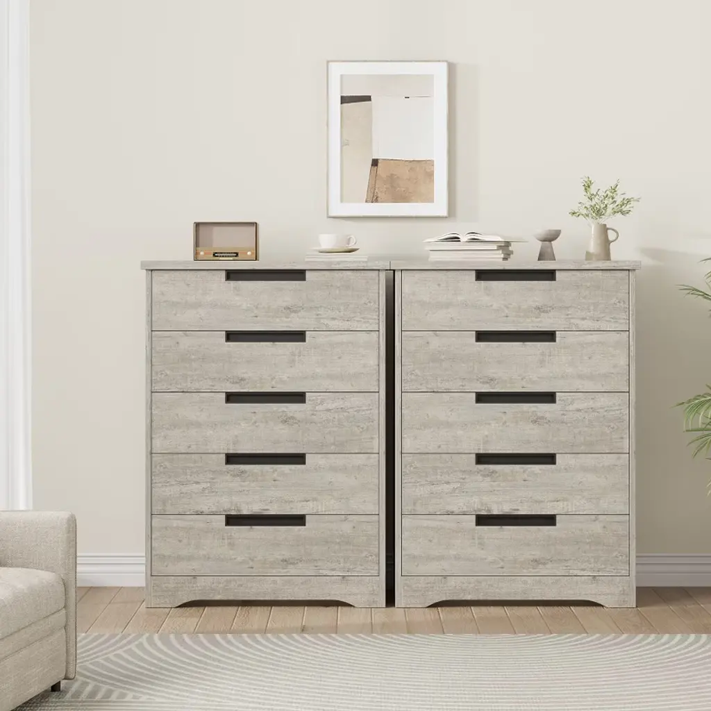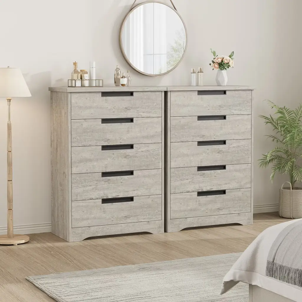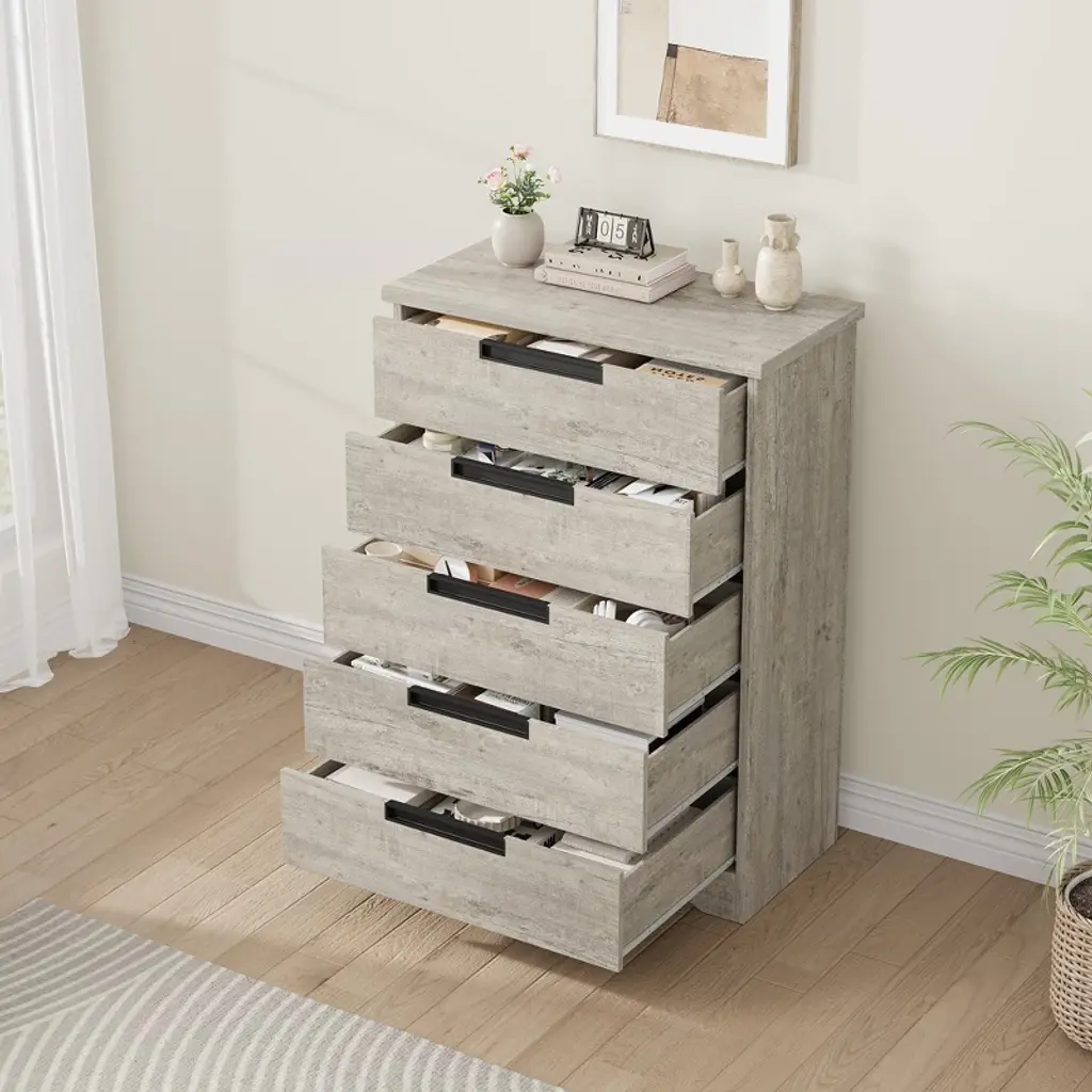 5 Drawer Dresser For Bedroom, Chest Of Drawers With Embedded Handles, Wooden Dresser Organizer For Living Room, Nursery, Hallway And Entryway