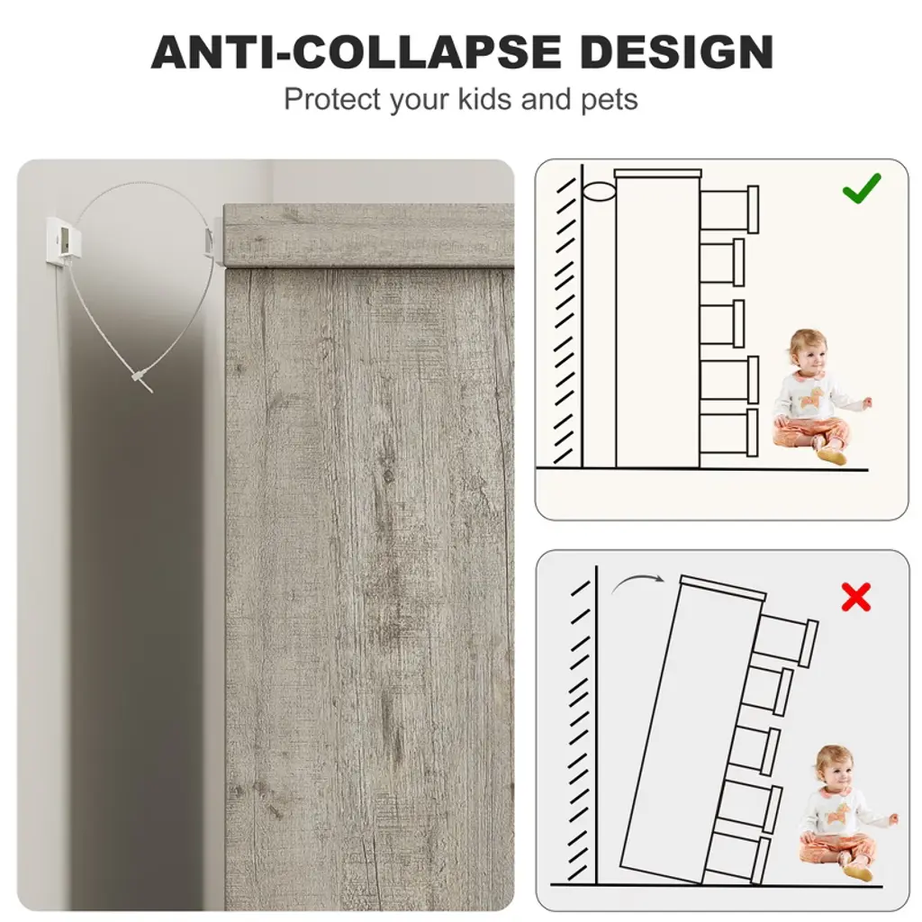 SPECIFICATION Overall Size: 30.3"W x 15.4"D x 44"H Use for: Dresser, TV stand, Vanity Desk, Baby Dresser Recommend Place: Bedroom, Living Room, Nursery, Office, Entryway Package Includes: 5 Drawer Dresser; Assembly Guide; Installation Tool