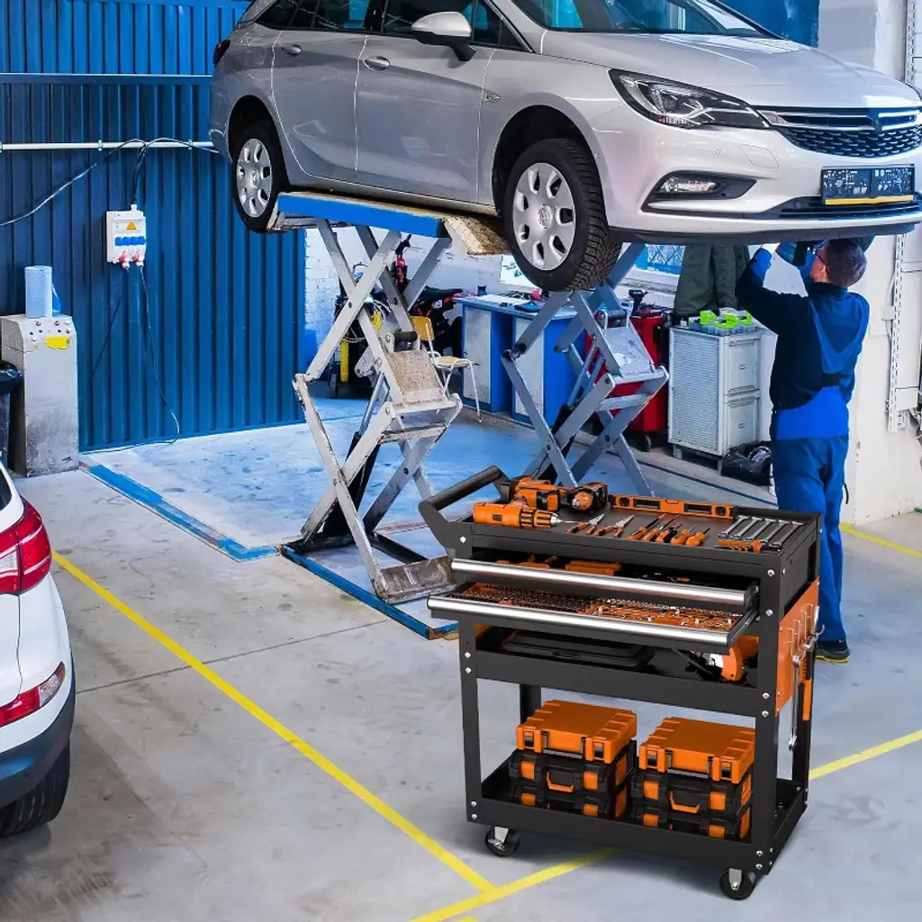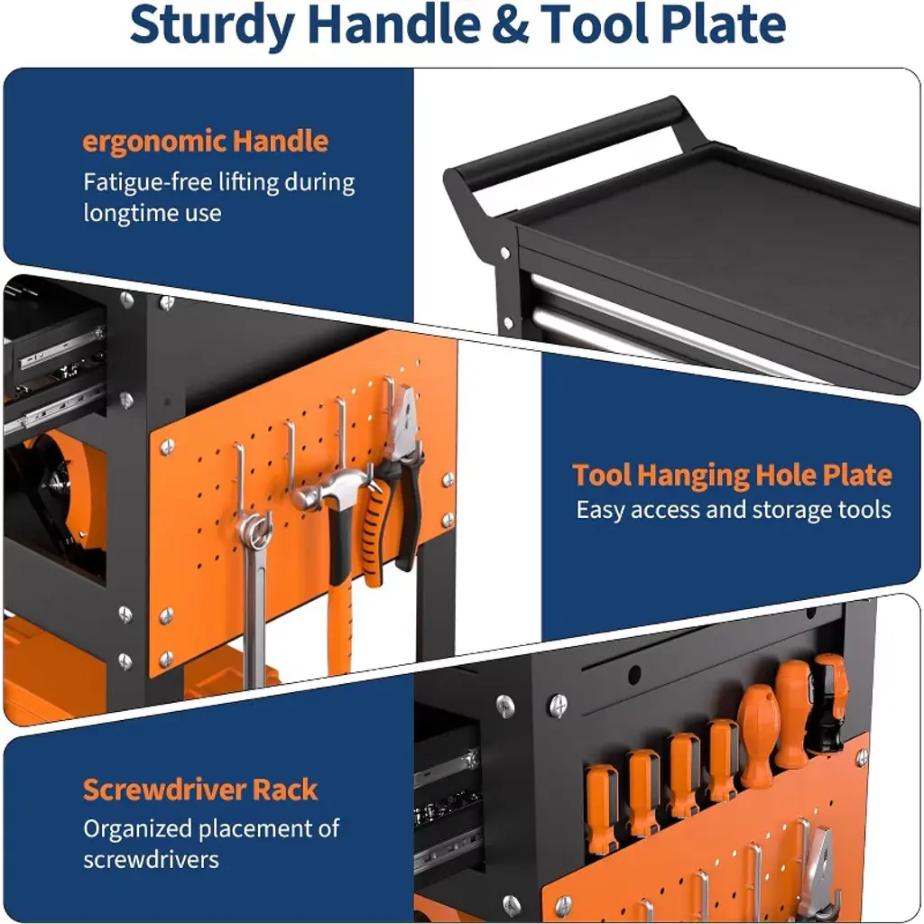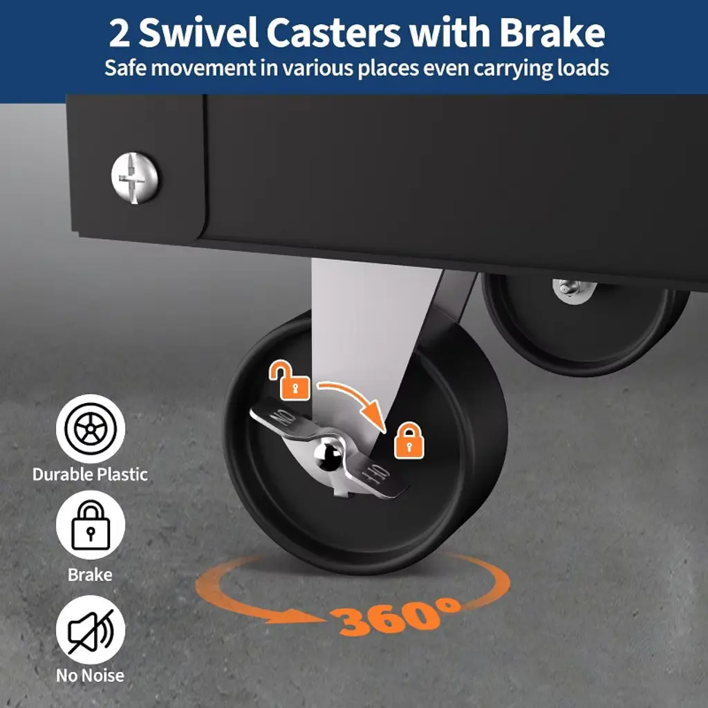 Keep your workspace tidy and tools easily accessible. The 4 tier tool cart with drawers features three generous shelves for everything from power tools to hardware, making it the perfect work cart for busy garages and repair shops