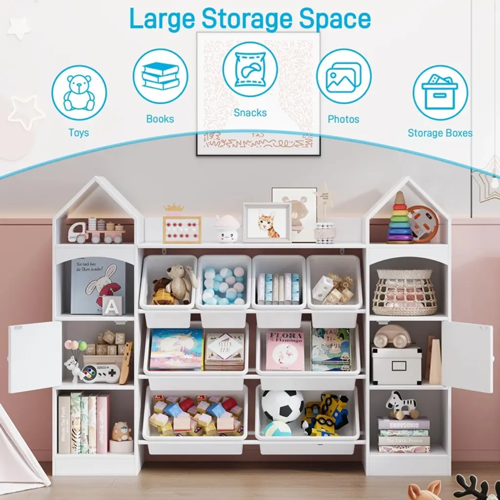 55" Castle Shape Children's Toy Storage Organizer, Multifunctional Bookshelf Bookcase, White
