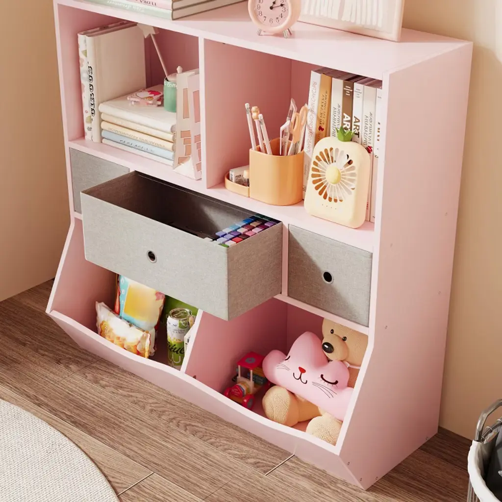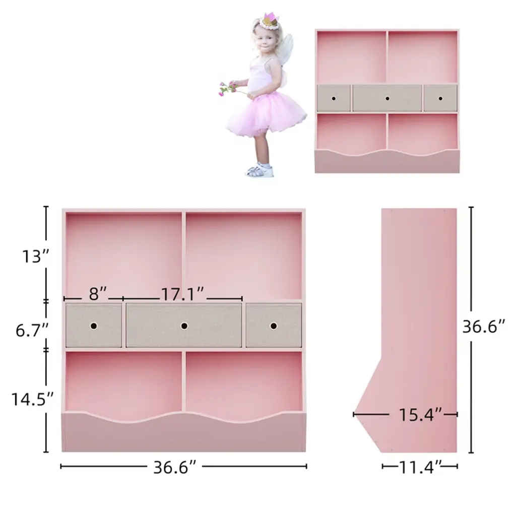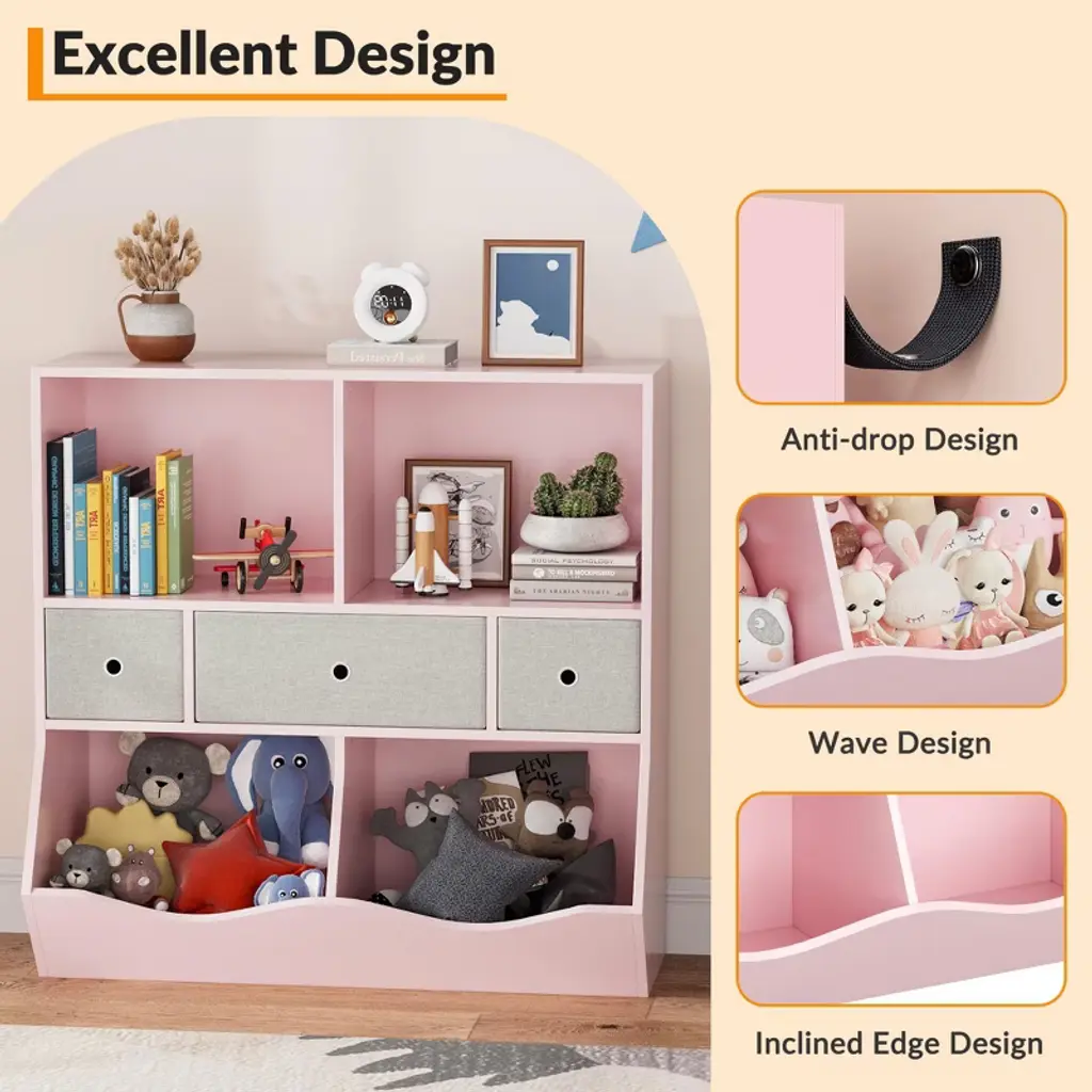7-cubby Large Kids Toy Storage Organizer, Children Wood Bookcase And Bookshelf, 3-tier Toy Storage Cabinet,pink