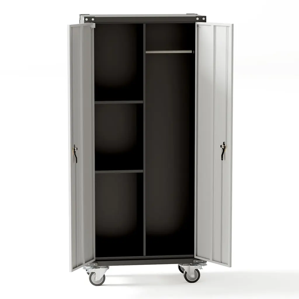 72" Garage Storage Cabinet with Wheels & Pegboard ¨C Heavy-Duty Locking Metal Cabinet with 2 Doors, Adjustable Shelves for Workshop/Home OfficeBrand: TROPOWMaterial: 0.6mm Cold-Rolled Steel (Powder-Coated)Color: BlackStyle: Industrial UtilityDimensions: 71"H x 30"W x 15"DWeight Capacity: 200 lbs per shelfSpecial Features: Built-In Pegboards (Doors + Back Panel) 2 Lockable Doors (Includes 2 Keys) Adjustable ShelvesAssembly: Required (~40 Minutes) PRODUCT HIGHLIGHTSULTIMATE TOOL ORGANIZATION Pegboard panels ¨C Hang tools/hooks for easy access Adjustable shelves ¨C Customize for bins or equipment Spacious interior ¨C Fits power tools/supplies INDUSTRIAL-STRENGTH BUILD? 200 lb shelf capacity ¨C Heavy-duty storage? Rust-proof powder coating ¨C Withstands garages? Reinforced steel frame ¨C Prevents warpingSECURE & MOBILE Lockable doors ¨C Safeguard valuables 4 wheels (2 locking) ¨C Move freely then stabilize 15" depth ¨C Fits tight workshop spaces EASY ASSEMBLY All hardware included Clear step-by-step guide Tool-free pegboard setup WHY CHOOSE THIS CABINET?? Pegboard + Shelves ¨C Dual organization systems? Lock & Roll ¨C Secure yet portable? Garage-Tough ¨C Scratch/rust-resistant? Multi-Purpose ¨C Workshop to home officePerfect For Storing: Power tools & hardware Cleaning supplies Office files or craft materials