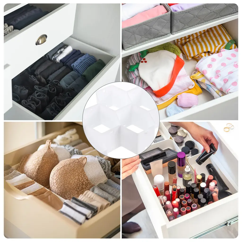 Description:Space saving: The DIY plastic divider expands to fit any type of drawer, and can be moved and folded freely; when not in use, the divider can be folded up for easy storage.Easy to Install: Our drawer organizer is designed with an interlocking construction for easy assembly and disassembly.Freely Adjustable: You can adjust it to suit your needs and it can be cut and assembled to fit your drawers or cupboards. This plastic drawer divider is perfect for storing socks, underwear, ties, belts, scarves, jewelry, cosmetics and more.Specification:Package: 8 Pcs Drawer Organizer DividerColor: WhiteSize: 35.5 x 6.5 cm/14 x 2.6 inchMaterial: PP Plastic