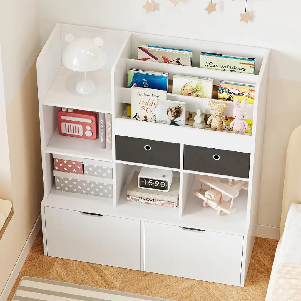 The Acekool Kids Bookshelf with Drawers and Cubbies brings order and style to playrooms, bedrooms, and nurseries. This thoughtful organizer offers five open cubbies for everyday items, four shelves for books, and both deep and fabric drawers for tucking away toys or supplies. Its modern look works well with a variety of room decors and helps kids develop tidy habits. Designed for everyday use, this bookcase features rounded corners, scratch-resistant finishes, and an anti-tip wall kit for an added layer of safety. The strong, stable frame supports all types of items without bending, while odor-free surfaces make it a comfortable addition to your child’s space. Assembly is straightforward with labeled parts and clear instructions. To keep it looking its best, simply wipe down the shelves and drawers as needed for fast, easy cleaning.