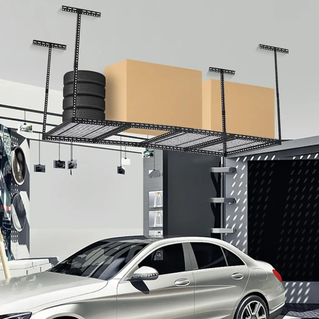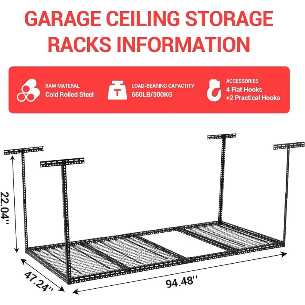 Acekool Metal Garage Ceiling Storage Rack, Overhead Mounted Organizer, 4 Columns, 71x47in, Black