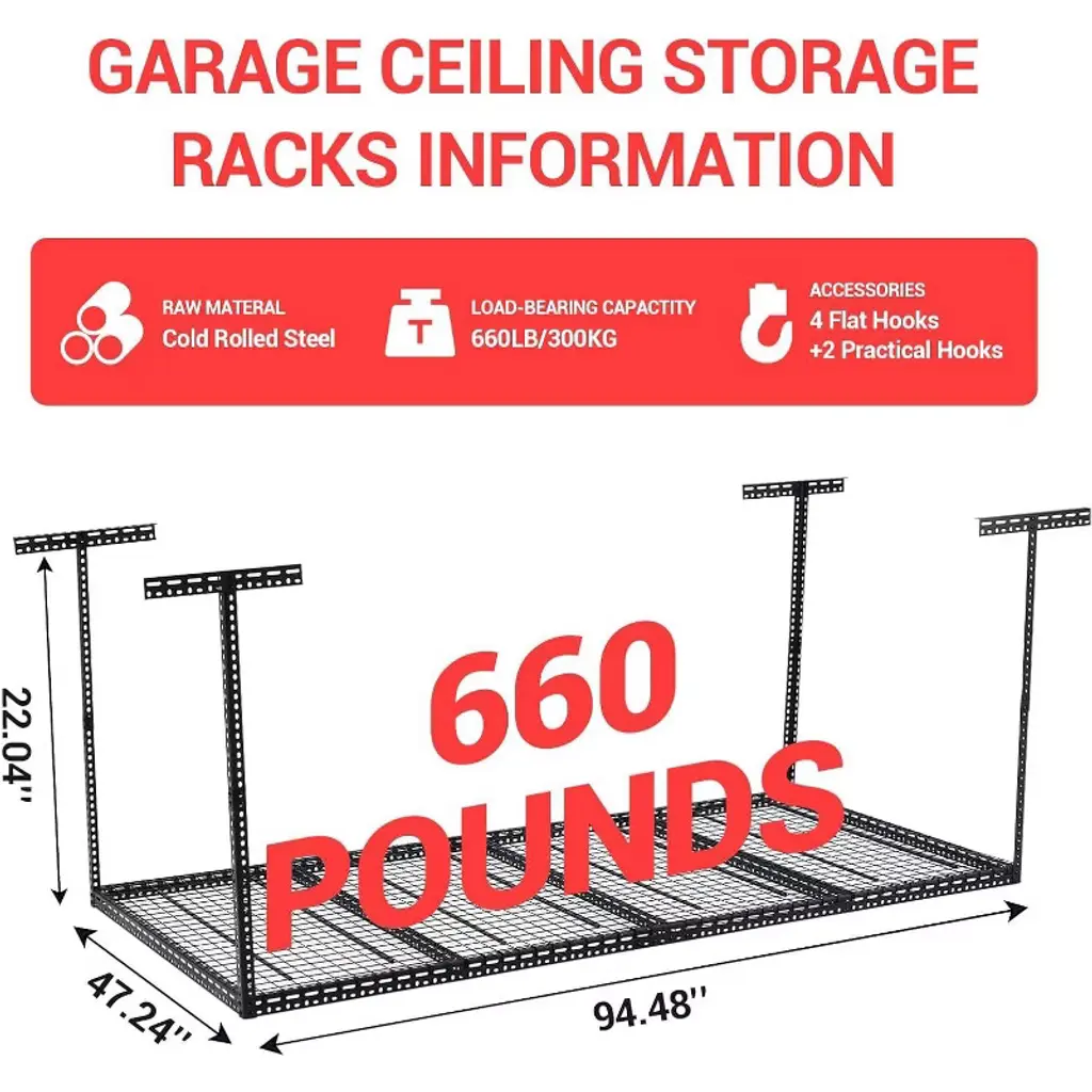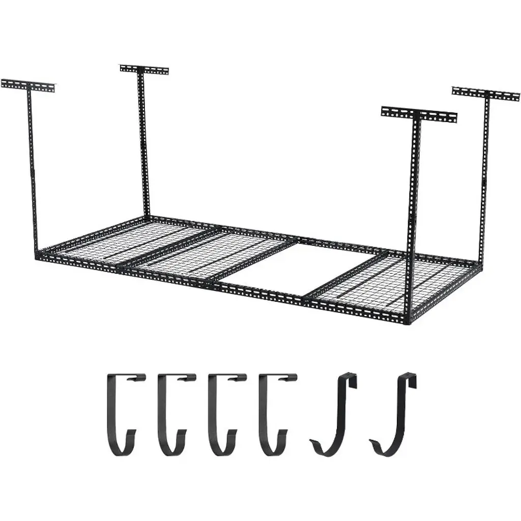 Acekool Metal Garage Ceiling Storage Rack, Overhead Mounted Organizer, 6 Columns, 94x47in, Black