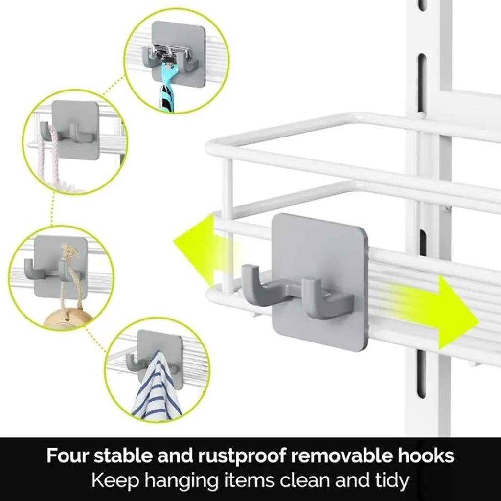 Adjustable Over-The-Door Shower Basin Rack Bathroom Hanging Organizer (Rustproof) - White