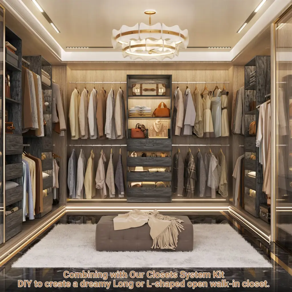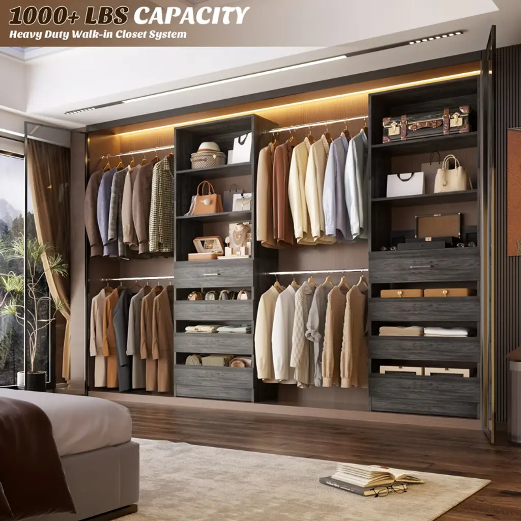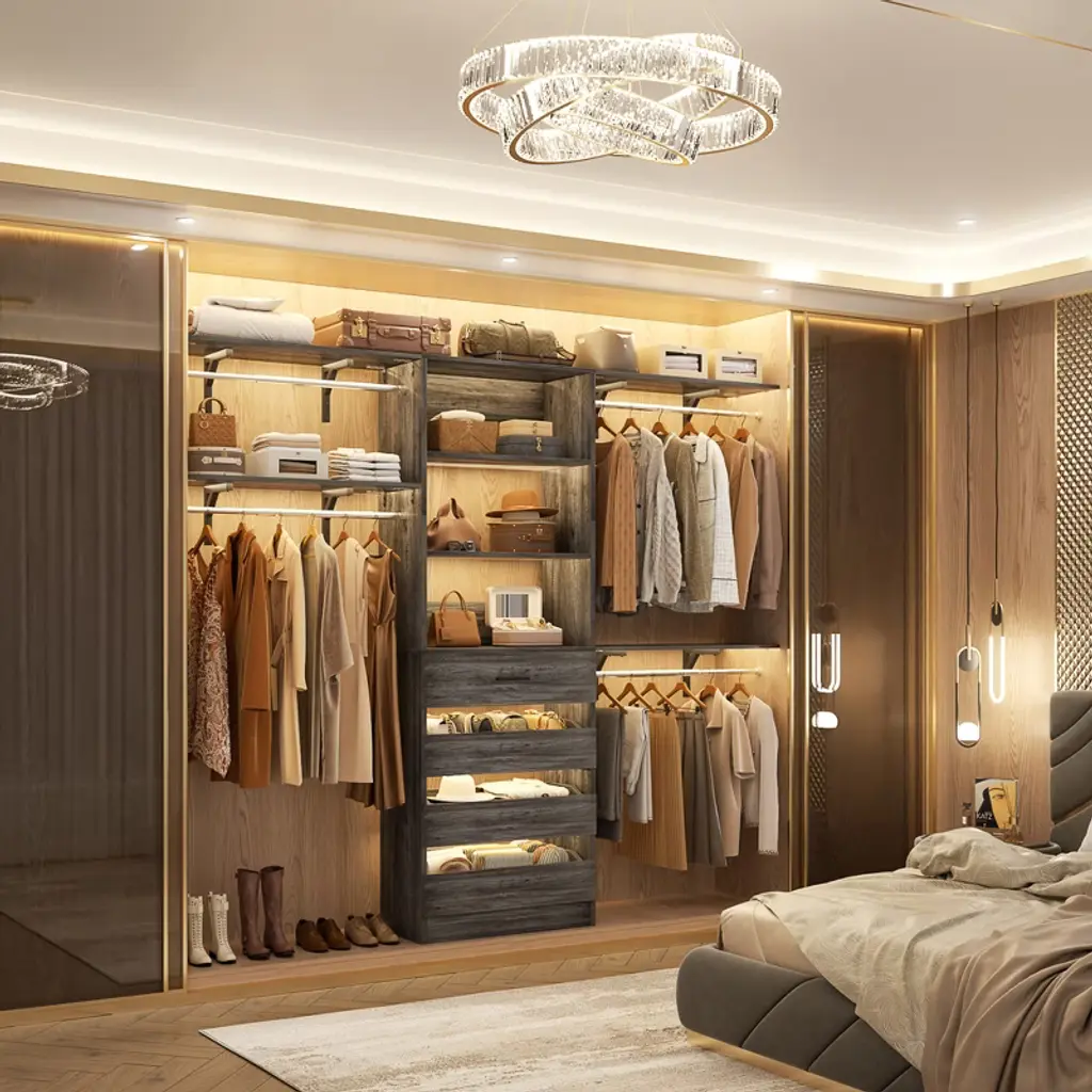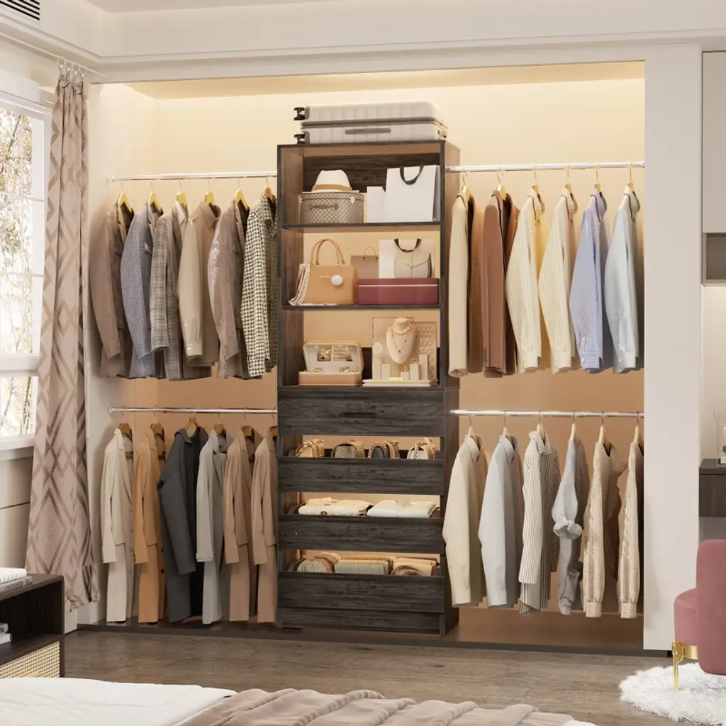 Thanks to its versatile design, this closet organizer system is perfect for use in a variety of spaces, including walk-in closets, reach-in closets, and even small spaces like apartments and dorm rooms. Whether you're looking to create a more functional space or simply want to upgrade the look of your closet, this system has got you covered. So why wait? Invest in our closet organizer system today and start enjoying a more organized and efficient closet space. With its sturdy construction, easy installation, and customizable design, it's the perfect solution for anyone looking to simplify their life and get more out of their closet. Order now and see for yourself!