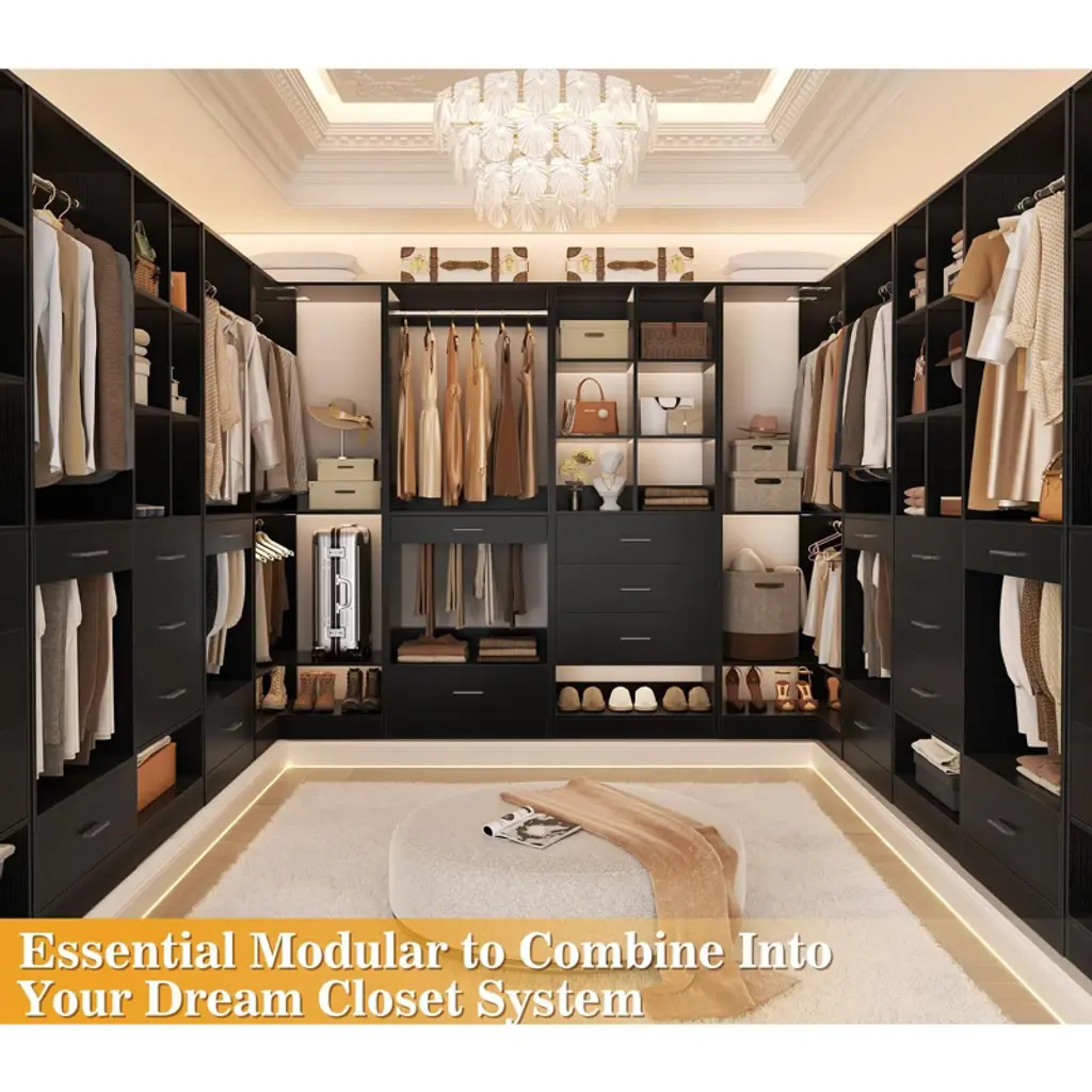 Aheaplus Closet System Organizer With Hanging Area, Freestanding Wooden Closet With Drawers, Black