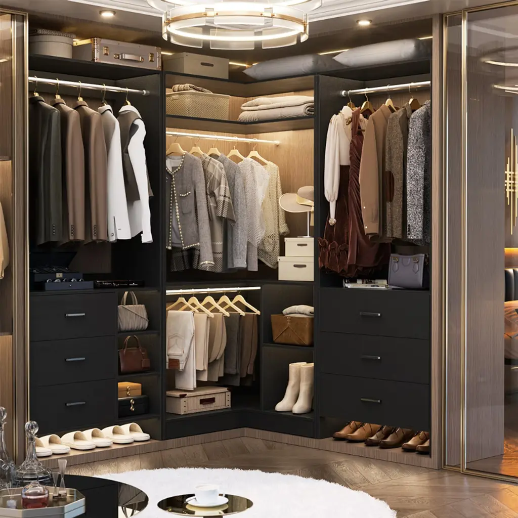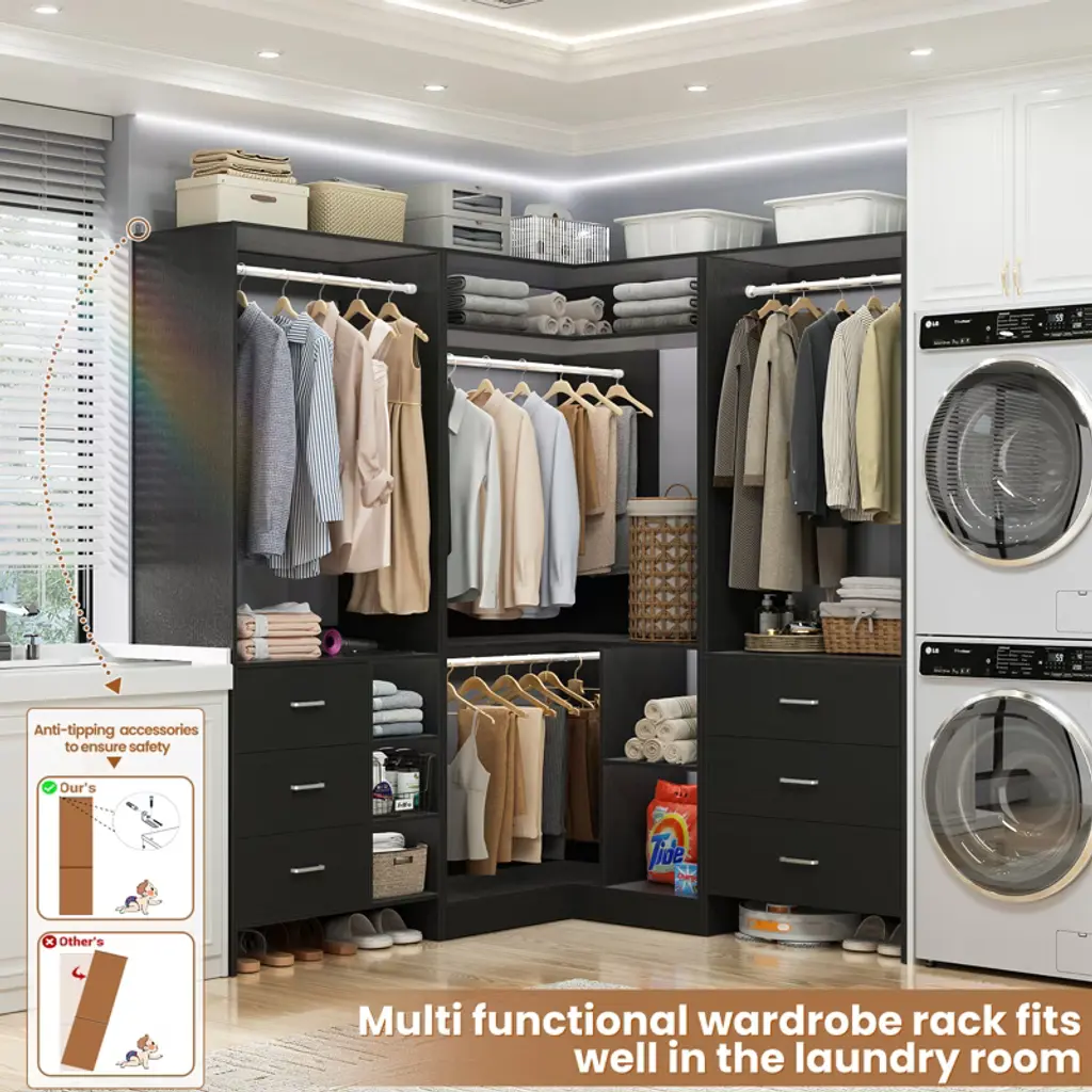 Aheaplus Set Of 3 Freestanding Corner Closet System, Space-saving Closet Organizer With Drawers And Hanging Rods