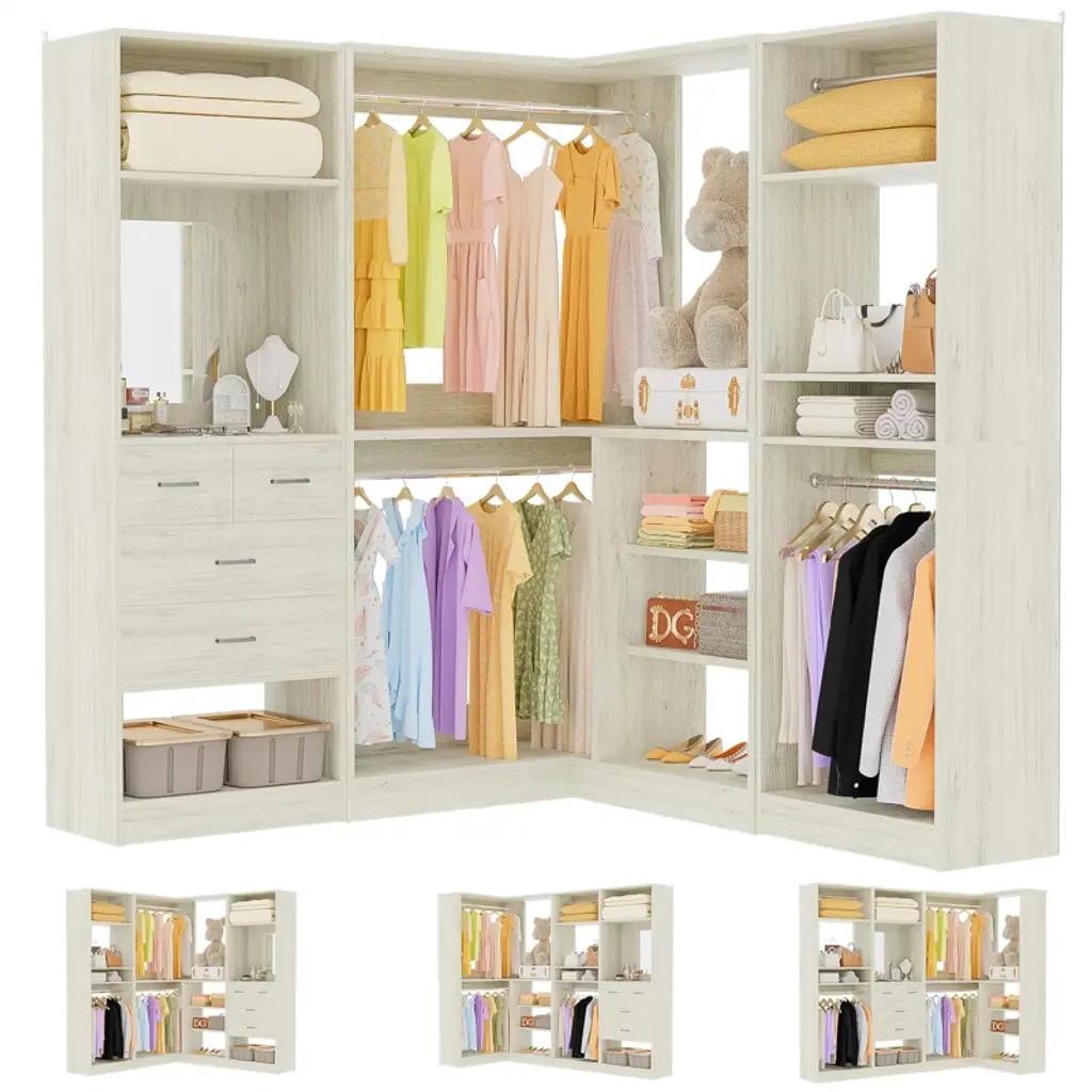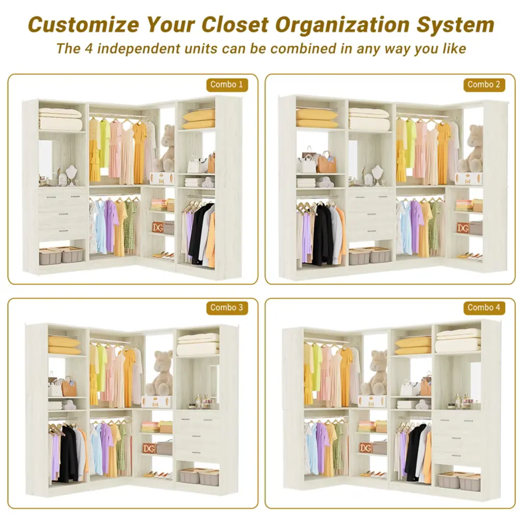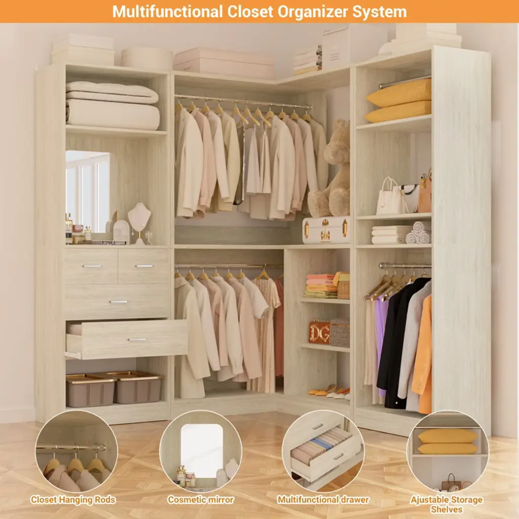 Aheaplus Wood Closet System, Freestanding Closet Organizer With Drawers And Mirror