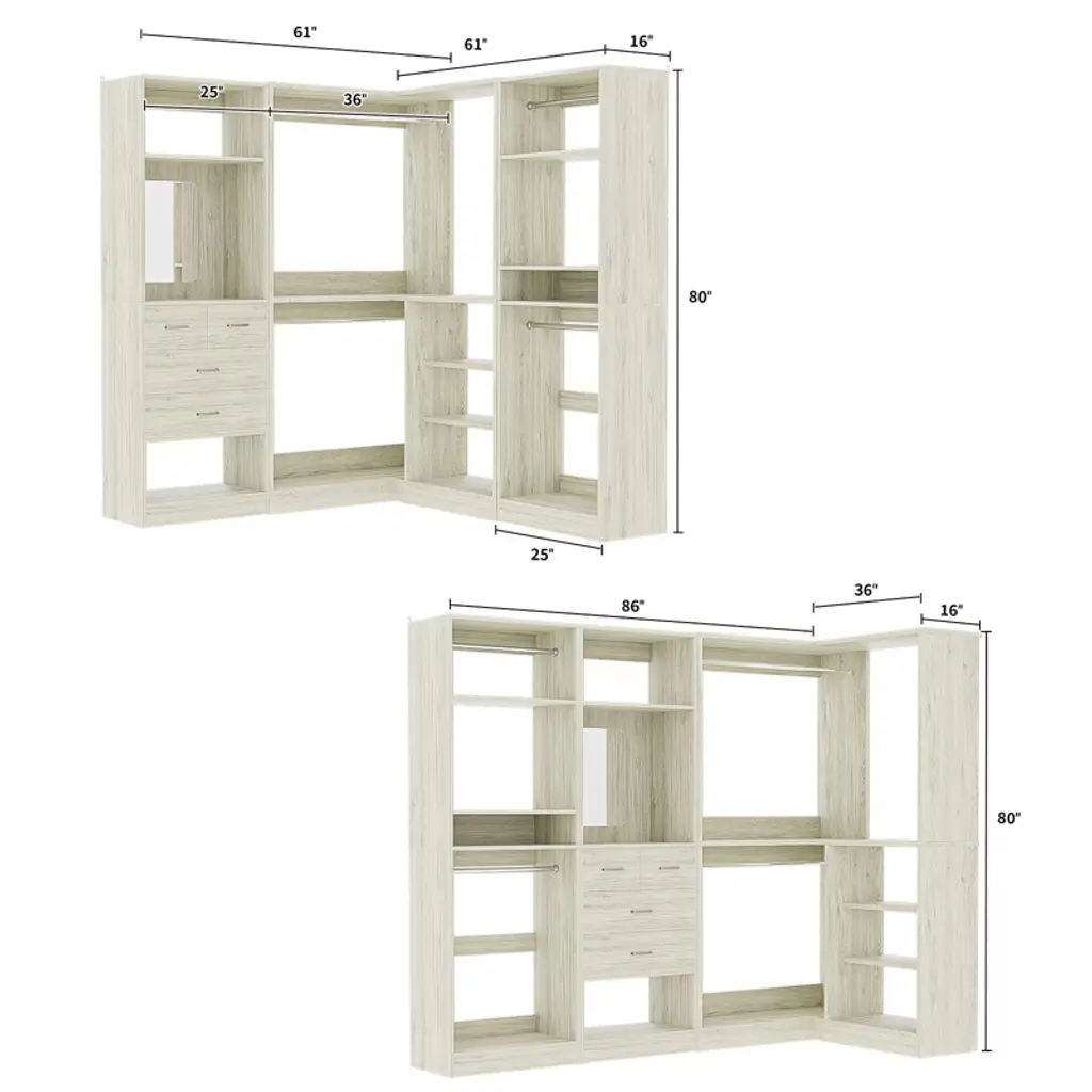 The freestanding closet system can serve as 3 standalone storage organizers to create a self-contained wardrobe system, or seamlessly combine more units to build luxury floor-to-ceiling storage walls. With this multi-room storage chameleon, you can create boutique-style closets without renovation, which can be widely used for any kind of storage system in your bedroom, dressing room, entrance, living room, laundry room, toddler room, etc.