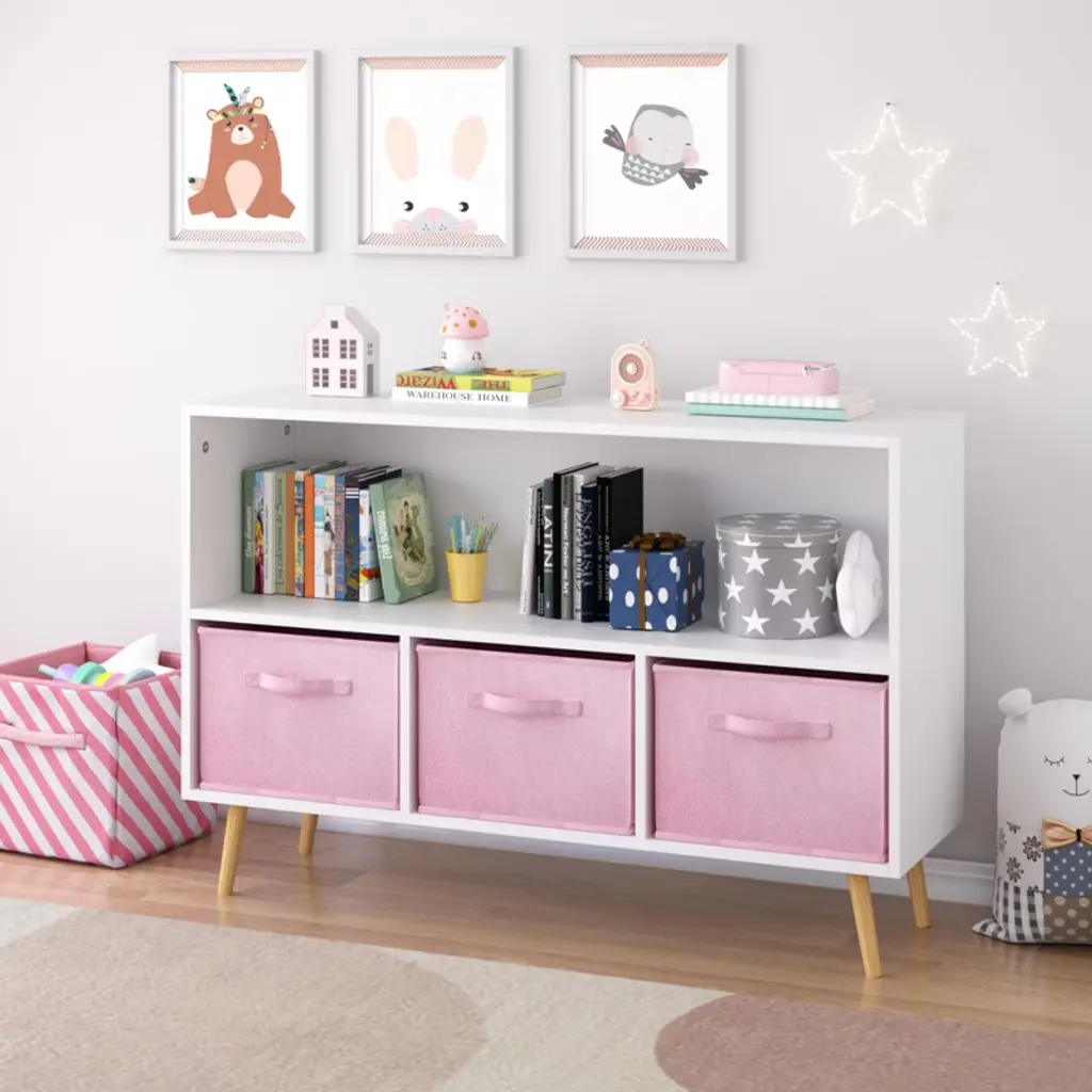 Aprilsoul Kids Bookcase With Collapsible Fabric Drawers, Children's Book Display, Toy Storage Cabinet Organizer