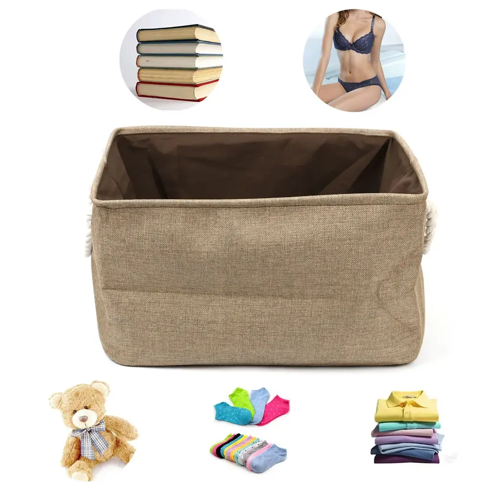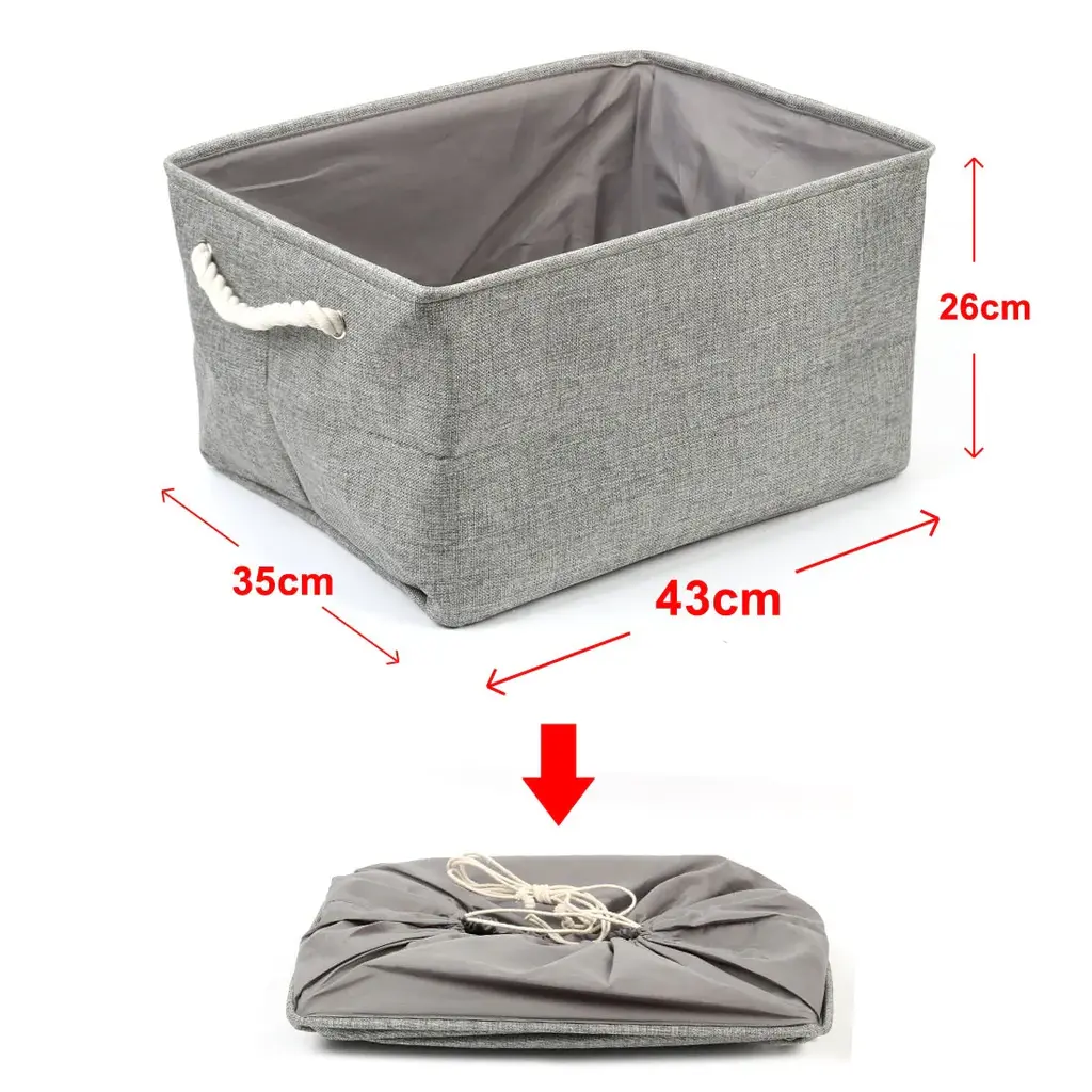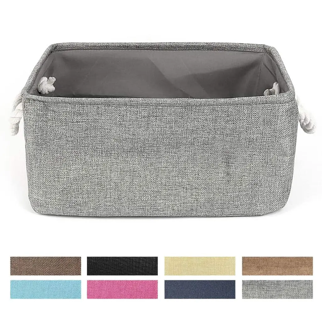 Organize your space with these Canvas Toy Bins that work great for laundry, clothes, towels, toys, and more. Made of durable linen and thicken environmental EVA, and available in multiple sizes and colors to fit your needs. The steel frame on the top of the edge makes it sturdy, and the PE coating inside is waterproof and easy to stand up even when empty. With a collapsible design and two handle design, these bins are easy to use and store. Perfect for any room in your home, from the closet to the bathroom.Features:Additional Information: