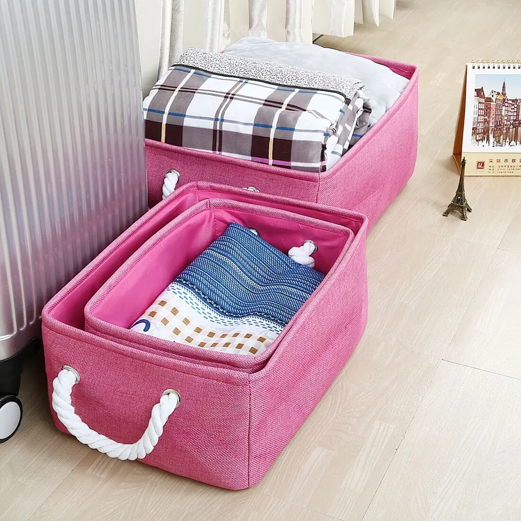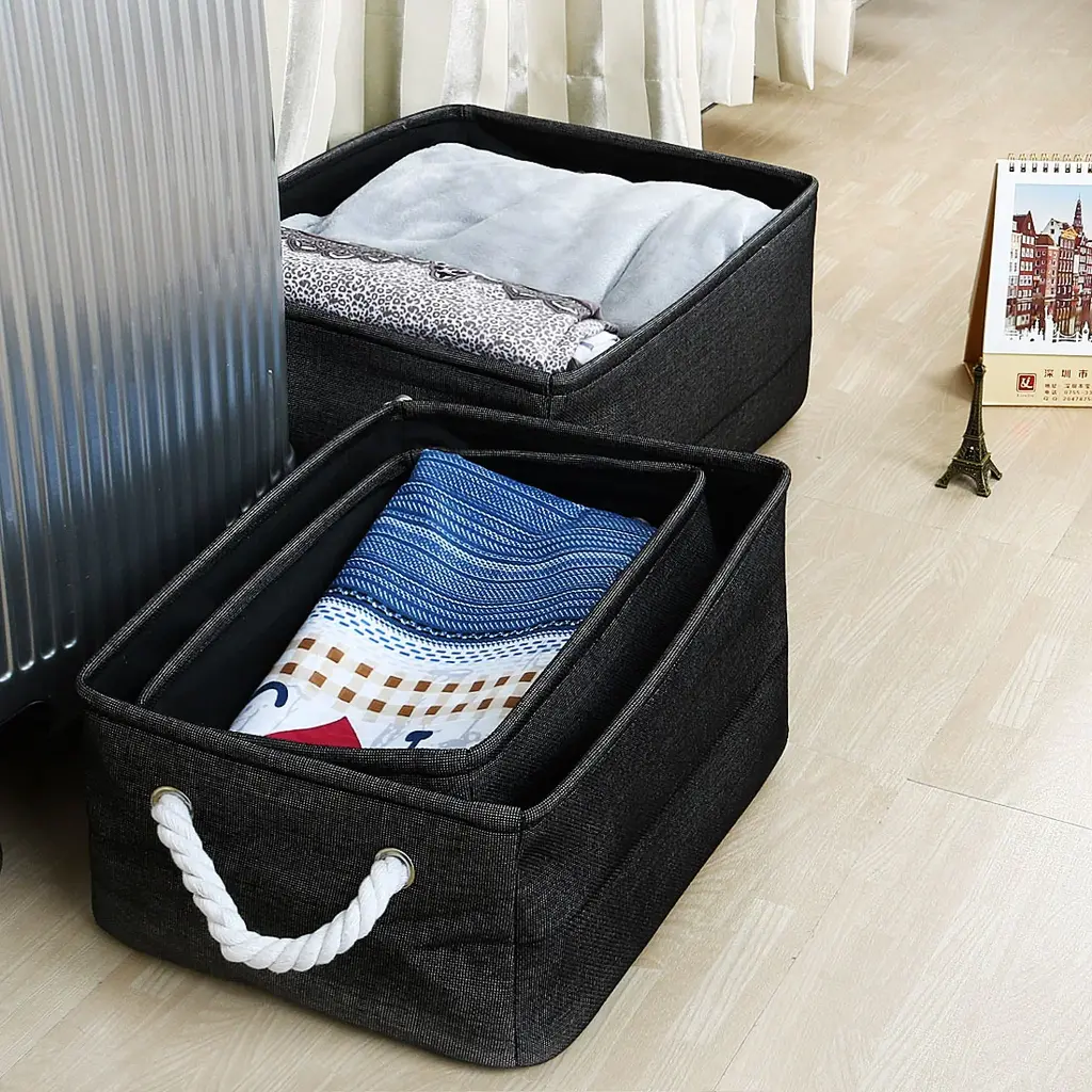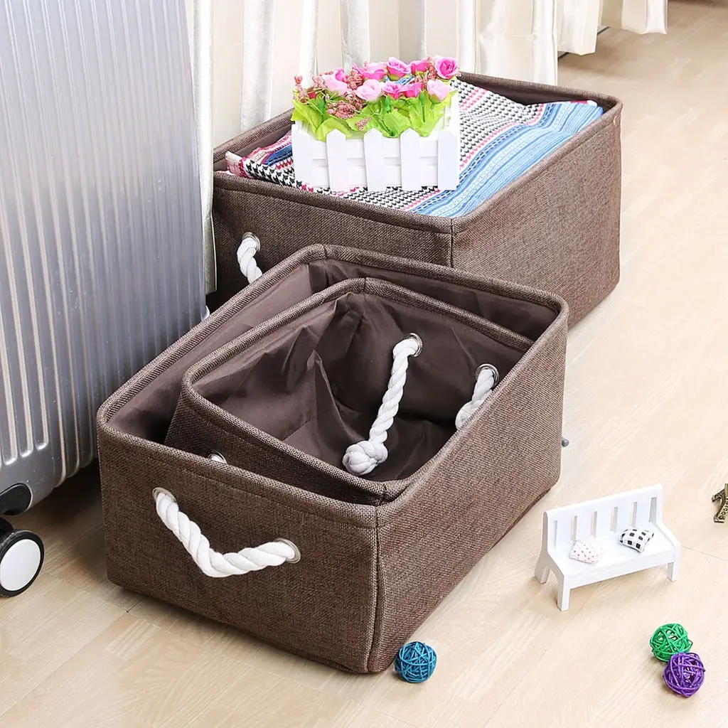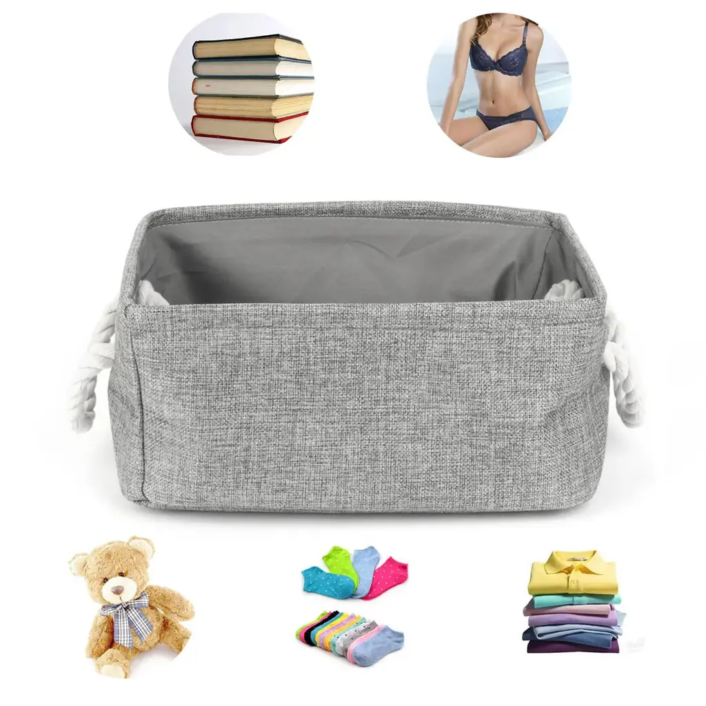 Organize your space with these Canvas Toy Bins that work great for laundry, clothes, towels, toys, and more. Made of durable linen and thicken environmental EVA, and available in multiple sizes and colors to fit your needs. The steel frame on the top of the edge makes it sturdy, and the PE coating inside is waterproof and easy to stand up even when empty. With a collapsible design and two handle design, these bins are easy to use and store. Perfect for any room in your home, from the closet to the bathroom.Features:Additional Information: