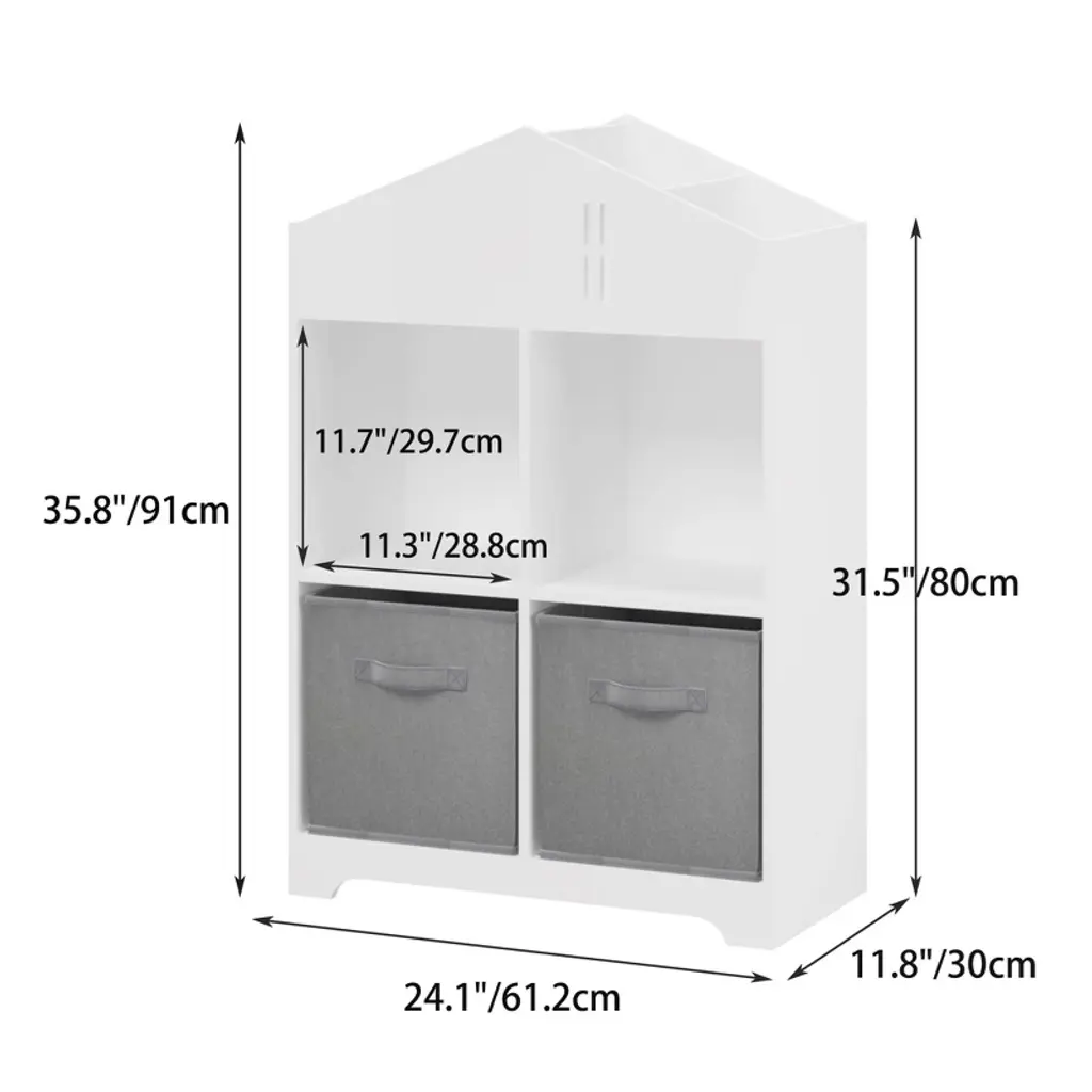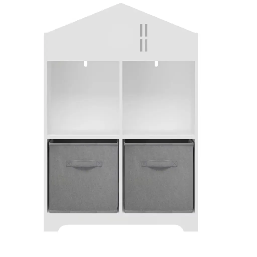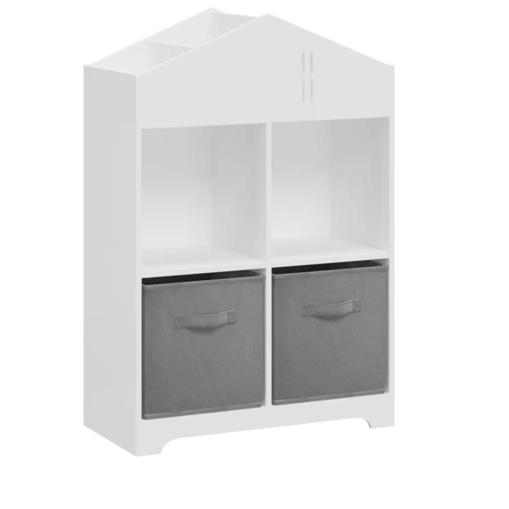 Cavinas Kids Display Stand Bookshelf Toy Storage Organizer With 2 Collapsible Fabric Drawers For Children's Room Nursery Hallway, White+gray