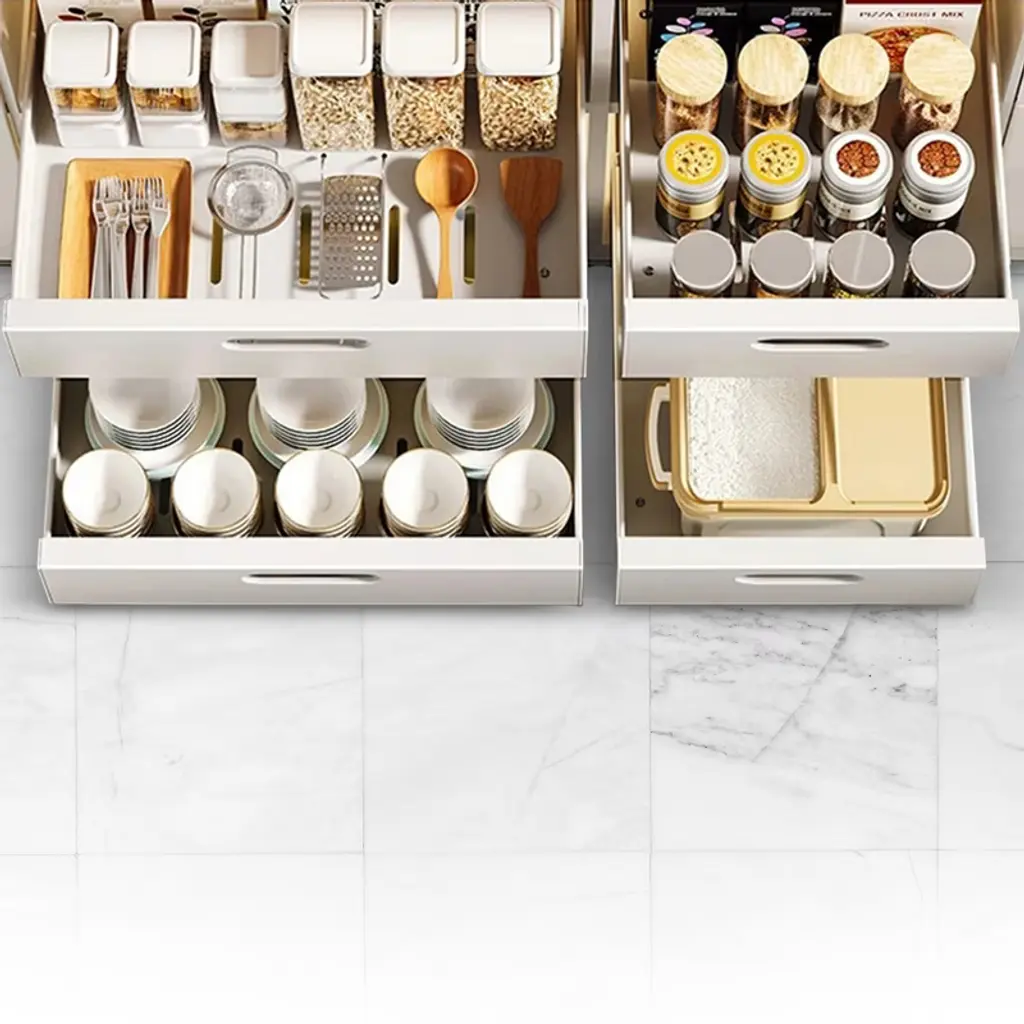 Upgrade your cabinet organization with the Cheer Collection Pull Out Organizer Drawers, designed to bring convenience and style to your kitchen, bathroom, and pantry. This sturdy pull-out drawer organizer, crafted from high-grade carbon steel, ensures durability and rust resistance, making it the perfect addition to any space that needs efficient storage. Measuring 17” x 11.8”, the compact design fits most cabinets, providing a versatile solution for your storage needs. The innovative adhesive nano film makes installation a breeze—no drilling or nails required. Simply peel and stick the nano film to your cabinet surface for a secure and stable fit. The drawer’s raised handle design allows you to effortlessly pull out the drawer, making deep cabinet items easily accessible without bending or stretching. Ideal for organizing a variety of items such as pots, pans, spices, and cleaning supplies, this pull-out organizer maximizes your cabinet space and keeps everything neatly stored. The anti-slip surface ensures stability, while the heavy-duty design supports up to 40 lbs of weight, offering a reliable storage solution for both large and small items. Versatile enough for any room, these pull-out drawers are perfect for use in the kitchen, pantry, bathroom vanity, or even in office spaces. The sleek, modern look complements any cabinet style, enhancing the overall appearance of your storage areas. With multiple sizes available, you can customize your setup to fit your exact cabinet dimensions. Cleaning and maintenance are also effortless, thanks to the removable drawer design. Simply press the snap feature to release the drawer, clean it, and then slide it back into place. Enjoy the benefits of a neat, organized, and accessible space with the Cheer Collection Pull Out Organizer Drawers—an essential addition for anyone looking to simplify their cabinet storage