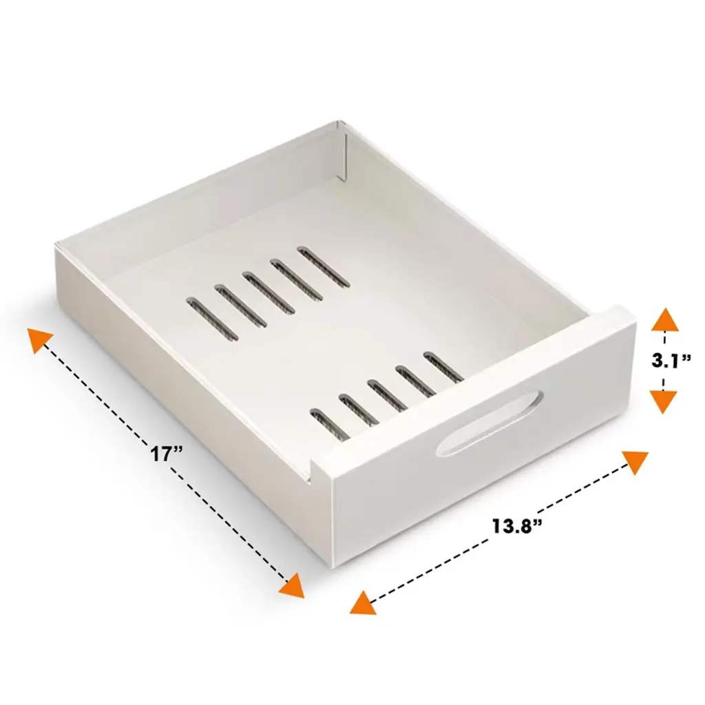 Upgrade your cabinet organization with the Cheer Collection Pull Out Organizer Drawers, designed to bring convenience and style to your kitchen, bathroom, and pantry. This sturdy pull-out drawer organizer, crafted from high-grade carbon steel, ensures durability and rust resistance, making it the perfect addition to any space that needs efficient storage. Measuring 17” x 13.8”, the compact design fits most cabinets, providing a versatile solution for your storage needs. The innovative adhesive nano film makes installation a breeze—no drilling or nails required. Simply peel and stick the nano film to your cabinet surface for a secure and stable fit. The drawer’s raised handle design allows you to effortlessly pull out the drawer, making deep cabinet items easily accessible without bending or stretching. Ideal for organizing a variety of items such as pots, pans, spices, and cleaning supplies, this pull-out organizer maximizes your cabinet space and keeps everything neatly stored. The anti-slip surface ensures stability, while the heavy-duty design supports up to 40 lbs of weight, offering a reliable storage solution for both large and small items. Versatile enough for any room, these pull-out drawers are perfect for use in the kitchen, pantry, bathroom vanity, or even in office spaces. The sleek, modern look complements any cabinet style, enhancing the overall appearance of your storage areas. With multiple sizes available, you can customize your setup to fit your exact cabinet dimensions. Cleaning and maintenance are also effortless, thanks to the removable drawer design. Simply press the snap feature to release the drawer, clean it, and then slide it back into place. Enjoy the benefits of a neat, organized, and accessible space with the Cheer Collection Pull Out Organizer Drawers—an essential addition for anyone looking to simplify their cabinet storage