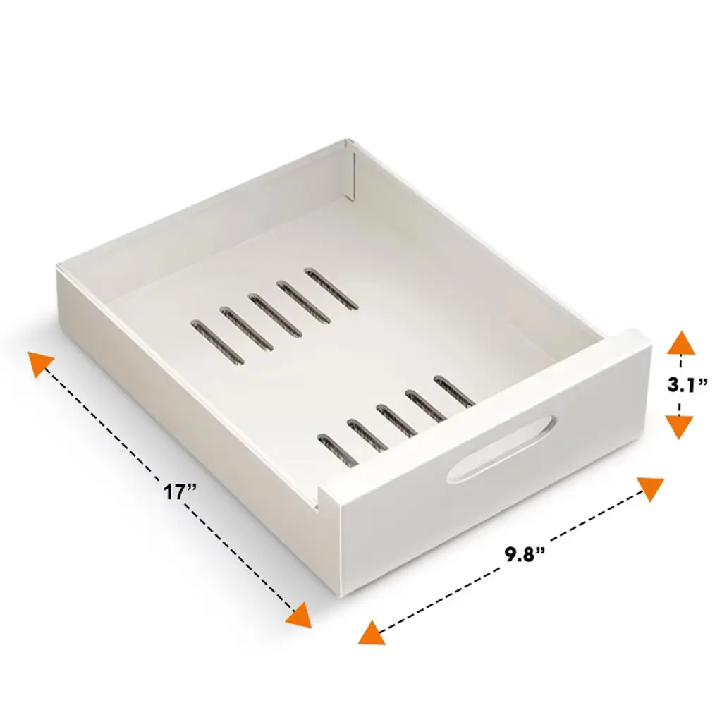 Upgrade your cabinet organization with the Cheer Collection Pull Out Organizer Drawers, designed to bring convenience and style to your kitchen, bathroom, and pantry. This sturdy pull-out drawer organizer, crafted from high-grade carbon steel, ensures durability and rust resistance, making it the perfect addition to any space that needs efficient storage. Measuring 17” x 9.8”, the compact design fits most cabinets, providing a versatile solution for your storage needs. The innovative adhesive nano film makes installation a breeze—no drilling or nails required. Simply peel and stick the nano film to your cabinet surface for a secure and stable fit. The drawer’s raised handle design allows you to effortlessly pull out the drawer, making deep cabinet items easily accessible without bending or stretching. Ideal for organizing a variety of items such as pots, pans, spices, and cleaning supplies, this pull-out organizer maximizes your cabinet space and keeps everything neatly stored. The anti-slip surface ensures stability, while the heavy-duty design supports up to 40 lbs of weight, offering a reliable storage solution for both large and small items. Versatile enough for any room, these pull-out drawers are perfect for use in the kitchen, pantry, bathroom vanity, or even in office spaces. The sleek, modern look complements any cabinet style, enhancing the overall appearance of your storage areas. With multiple sizes available, you can customize your setup to fit your exact cabinet dimensions. Cleaning and maintenance are also effortless, thanks to the removable drawer design. Simply press the snap feature to release the drawer, clean it, and then slide it back into place. Enjoy the benefits of a neat, organized, and accessible space with the Cheer Collection Pull Out Organizer Drawers—an essential addition for anyone looking to simplify their cabinet storage