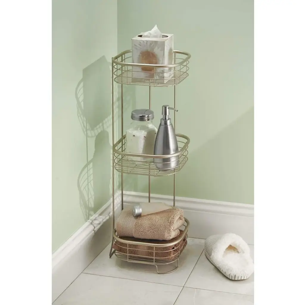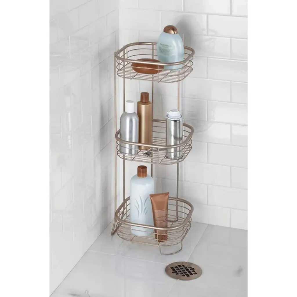Space-Saving Shower Storage:The corner design fits perfectly in compact showers, featuring wire racks that drain water while organizing all bath essentials - from tall bottles to small toiletries.Multi-Purpose Bath Organizer:Functions as both a shower caddy and freestanding bathroom organizer - ideal for storing shower products, toiletries, cosmetics, or cleaning supplies anywhere in your bathroom.Durable Metal Construction:Crafted with rust-resistant metal wire and a stylish bronze finish that withstands daily use while complementing any bathroom decor.Smart Water Drainage:Open wire design prevents water buildup to keep products dry and minimize mildew - no more soggy soap dishes or pooled shampoo bottles.Trusted Quality:From a leading global home organization brand, offering innovative storage solutions that combine smart functionality with affordable style.