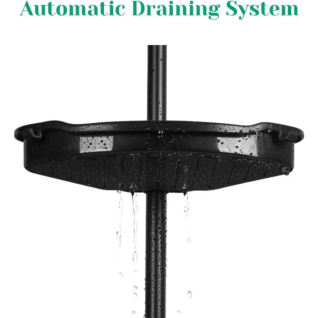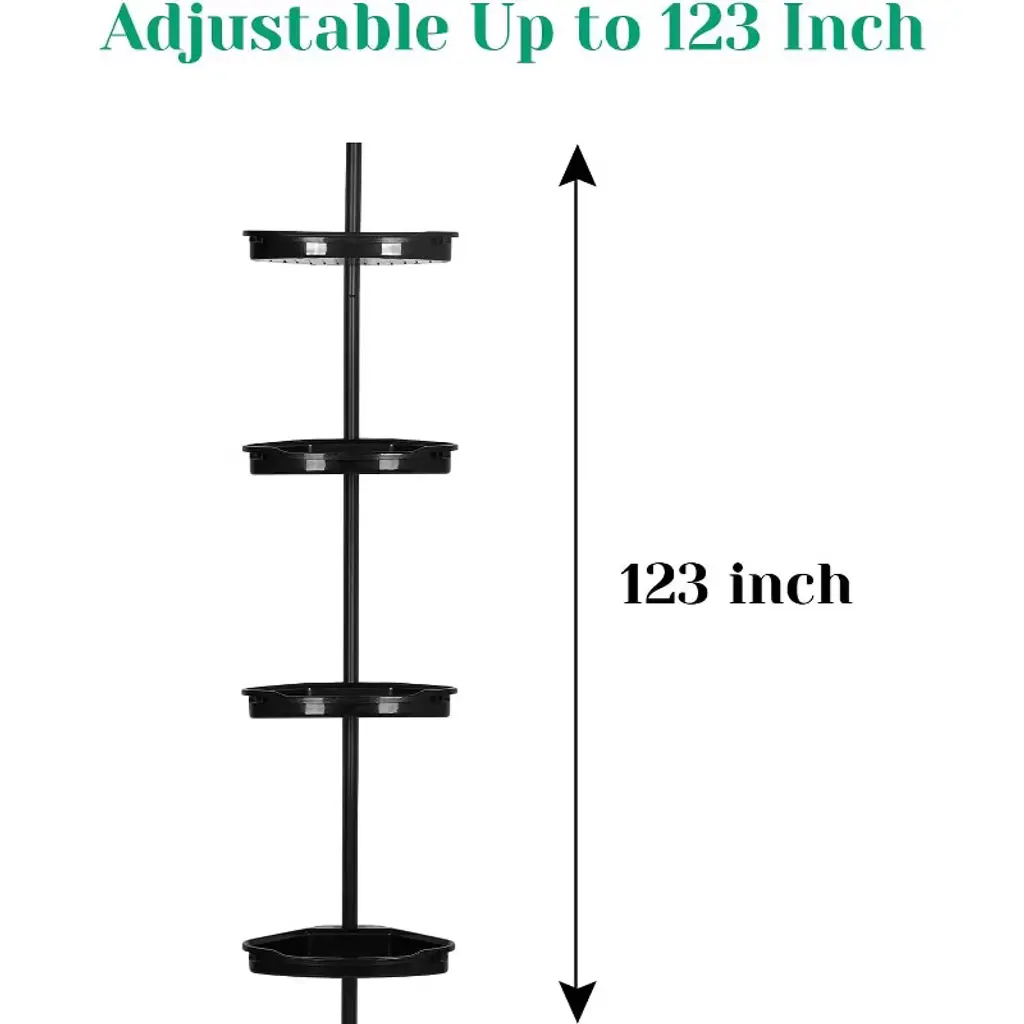 Corner Shower Caddy Tension Pole, Rust-resistant Bathroom Storage Organizer With 4-tier Adjustable Shelves & Rubber Pad, 101.6''- 122'' Height, Black