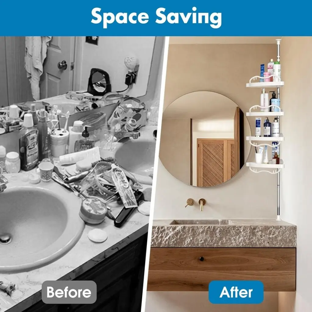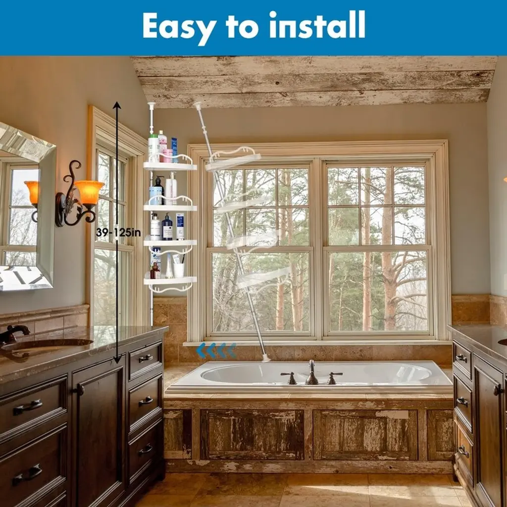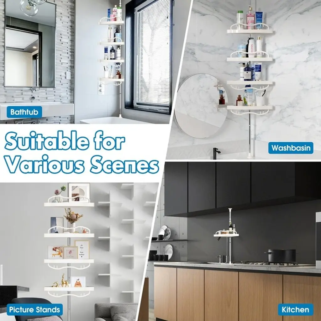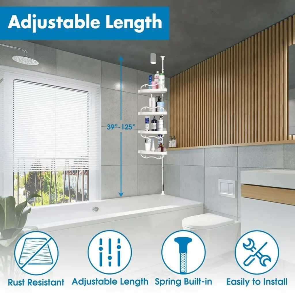 Corner Shower Organizer, 56-125 Inch Caddy, 4 Layer Plastic Shelves With Rustproof Steel Tension Pole - Silver