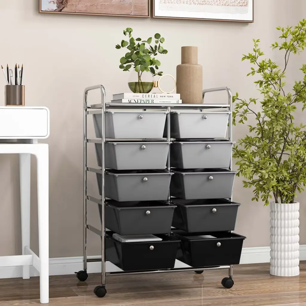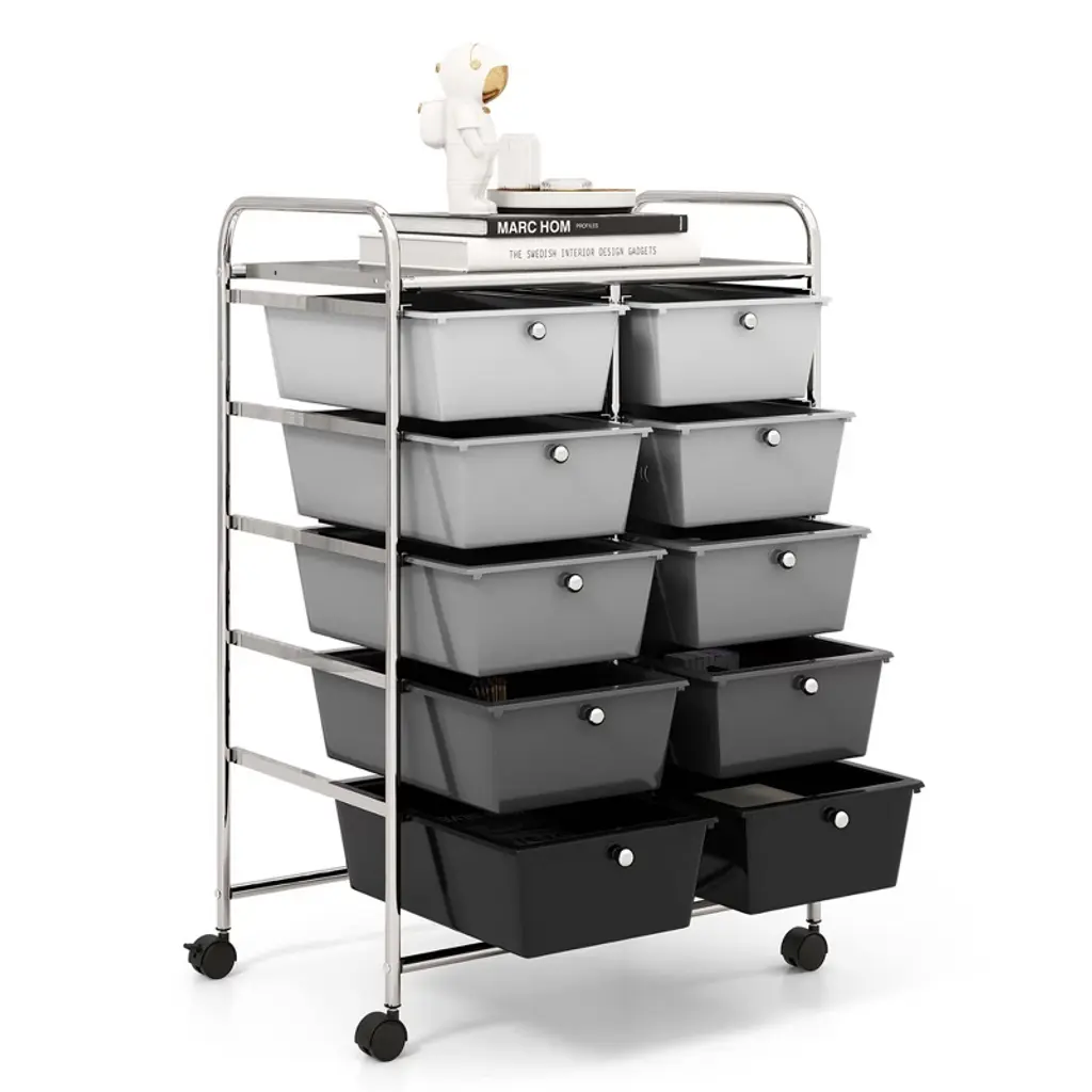 Costway 10-drawer Storage Cart Utility Rolling Trolley Kitchen Organizer Black Gradient