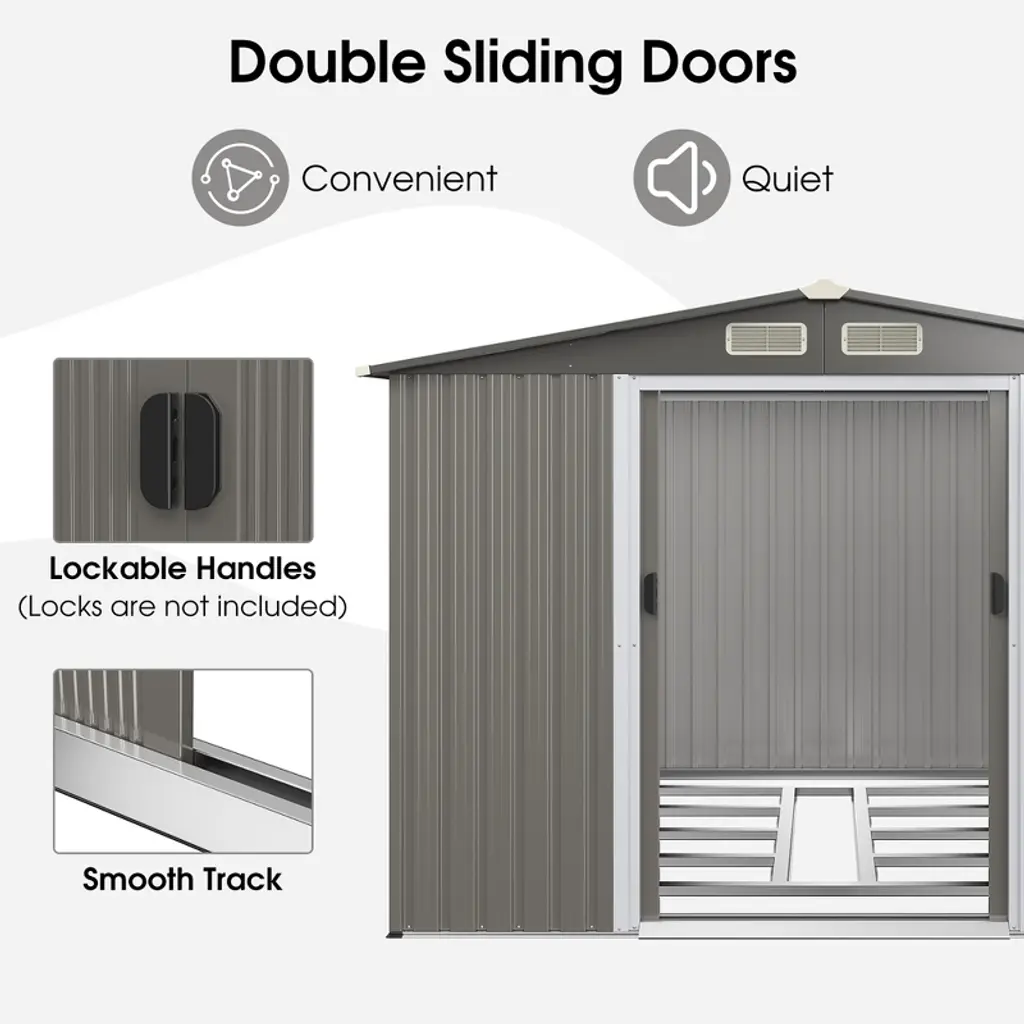 Costway 8'x6' Outdoor Storage Shed Galvanized Steel Tool House Organizer For Garden Yard