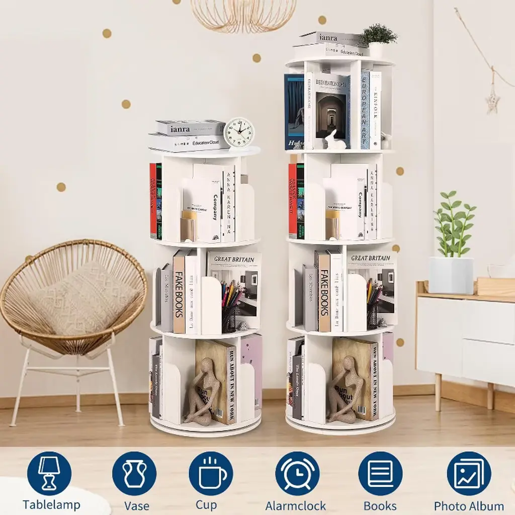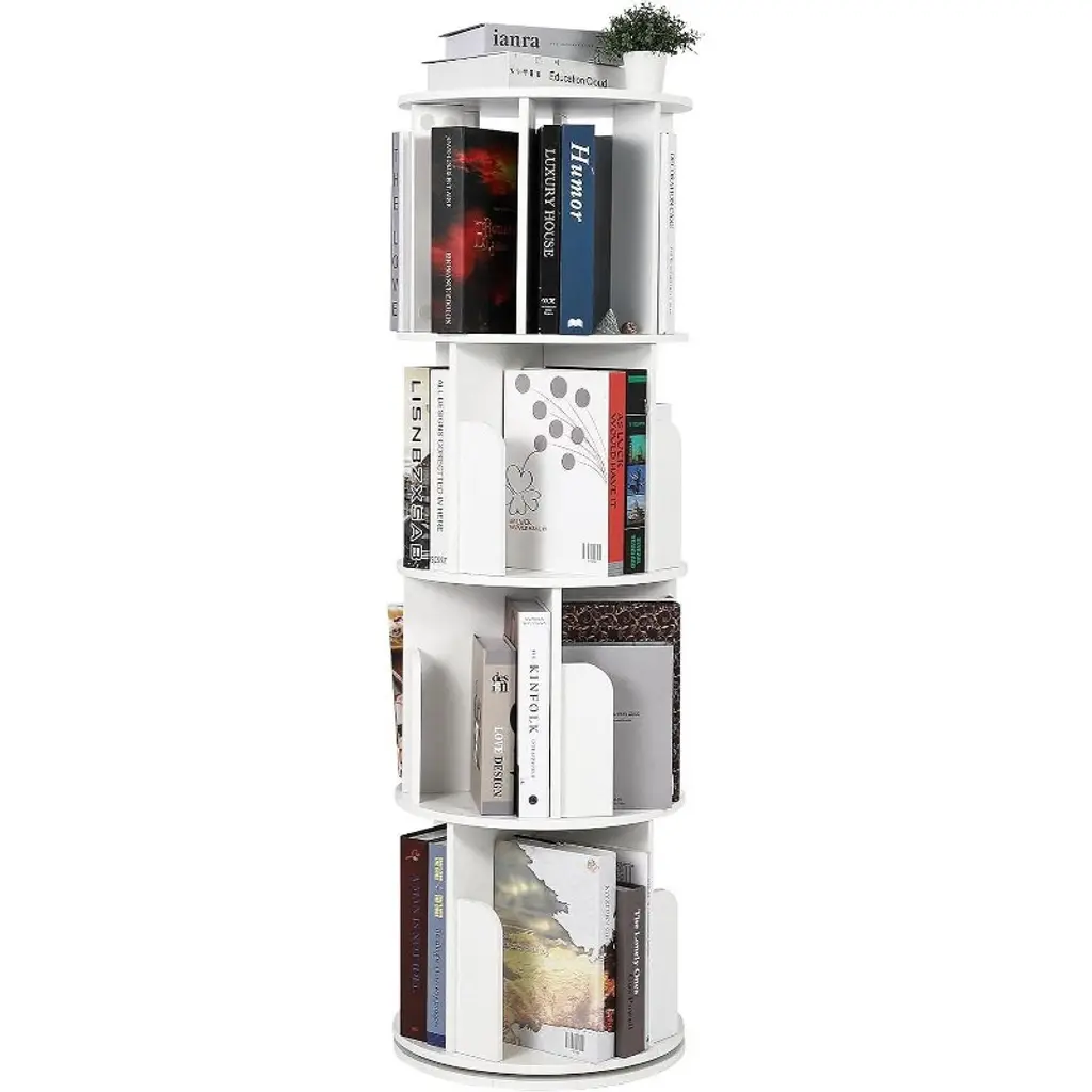 Coucheta 52'' Tall 4-tier 360° Wooden Rotating -Display Floor-standing Bookshelf , Multi-functional Storage Organizer For Kids In Living Room,white
