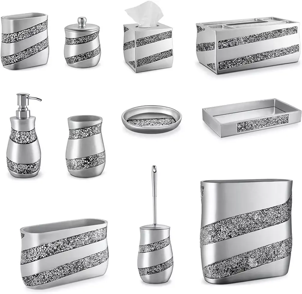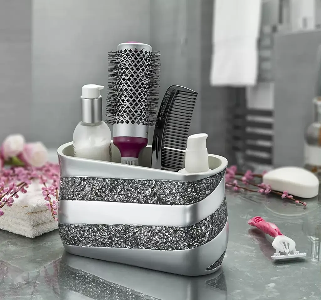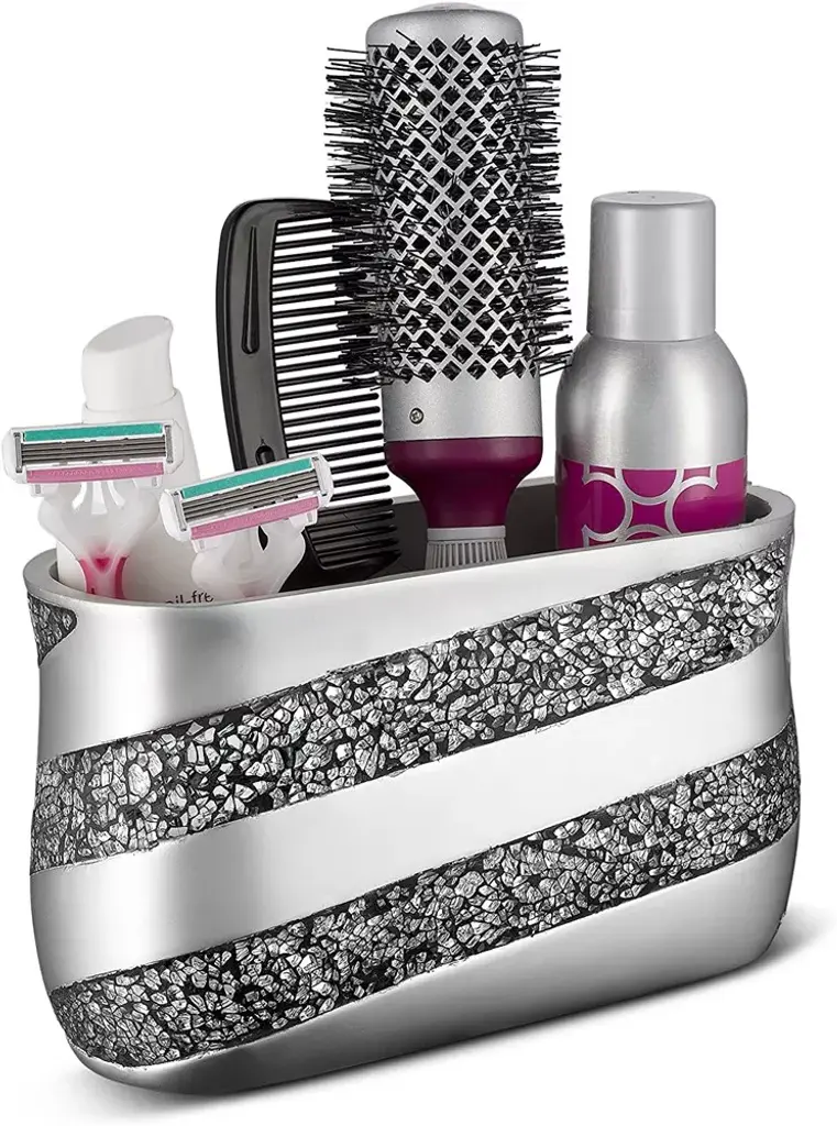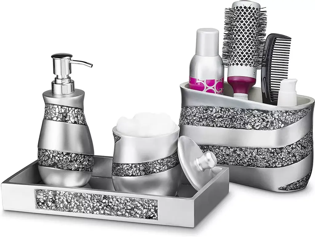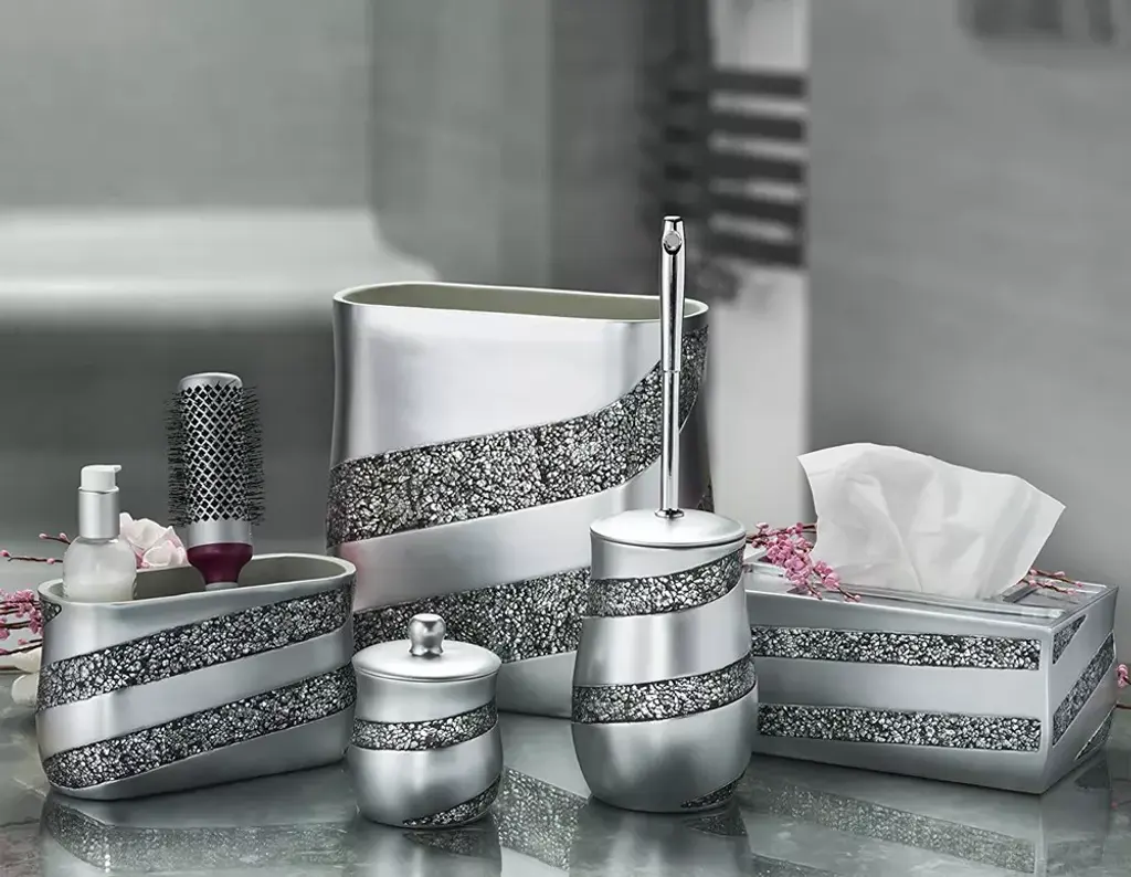 Give Your Bathroom an Impressively Exquisite Touch Elegance in Action Whether your bathroom has a contemporary look, a rustic feel, or more of a traditional décor, our Silver Mosaic bath accessories complement it with color, shape, and detailing that adds an instant splash of class. You’ll love the rich silver-gray look that blends into any color scheme, the soothing gentle curves, and the crackled glass detailing that creates exquisite drama and eye-catching dance of light. Collect the bath accessories piece by piece to end up with a bathroom that is not only functional but an elegant sight to behold. All about Quality Unlike metal that easily rusts or regular plastic that quickly cracks, these bath accessories are made using a high-grade resin that ensures maximum durability. All through the daily use and humid conditions of your bathroom, these beautiful pieces will remain in eye-catching condition for years to come. And we’ve carefully sized each accessory to ensure it saves on valuable space while still exuding a captivating presence. Experience a hard-to-find marriage between superior quality and great functionality. Here’s why you’ll love the Silver Mosaic collection: - Made using high-grade resin to ensure maximum durability. - Beautiful curves create a timeless look to suit any bath. - The silver-gray hue beautifully blends into any color scheme. - Perfectly sized to fit even tight-spaced bathrooms. - Unique design makes it a great gift for both men and women. Treat yourself or that loved one to the most beautiful bath accessories that bring on the functionality without skimping on quality. Click ‘Add to Cart’ now!