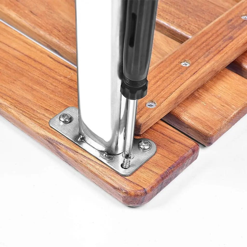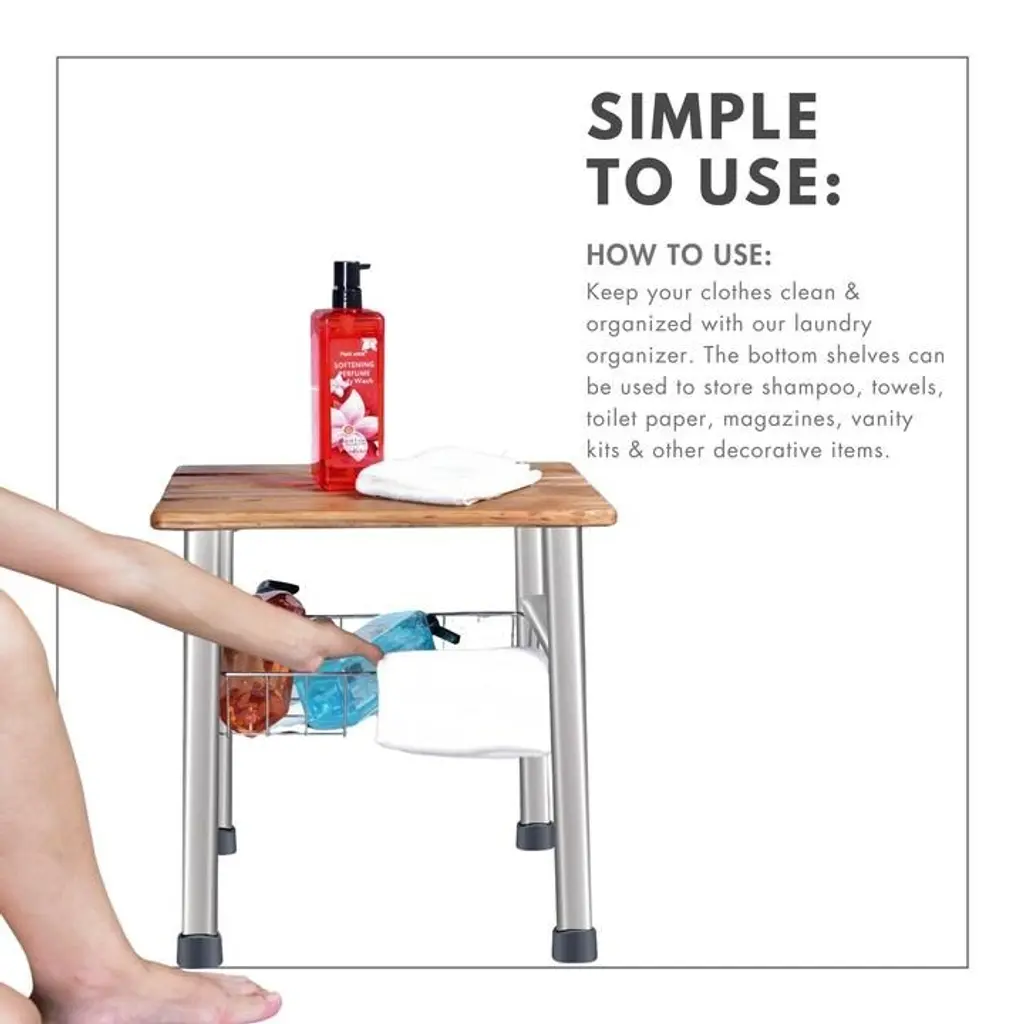 Deluxe Teak And Stainless Steel Shower Seat Organizer (No Handles) - Bathroom Shower Stool, Chair, And Storage - 19.7 X 13 X 6.4 - 19.7 X 13 X 6.4 - Silver