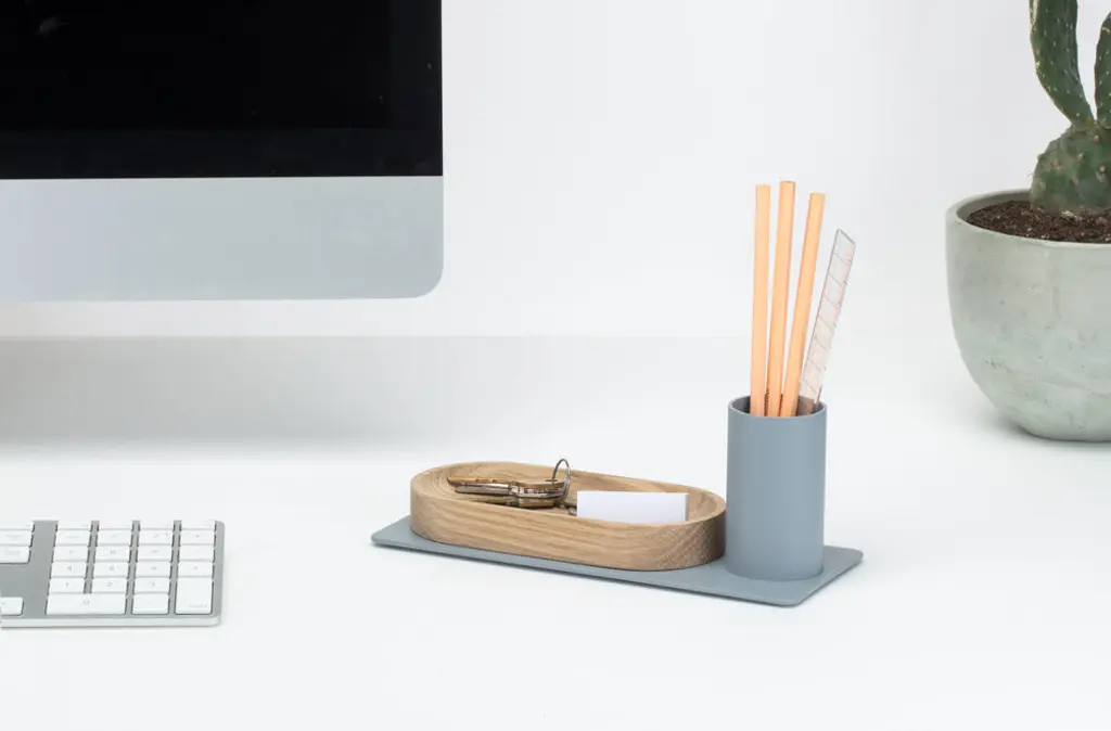 Meet the Desktop Organizer: the classic companion to any work surface. Combines a powder coated steel base and pencil cup, wooden tray and six color options to keep clutter at bay.