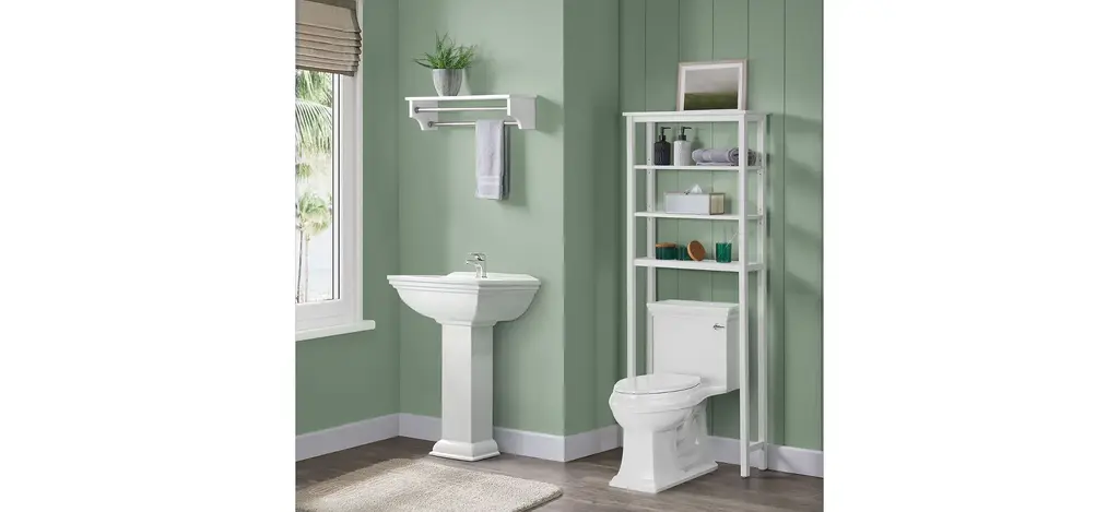 The classic Dover 2-pc. Over-Toilet Organizer w/ Open Shelves and Towel Rods brings space-saving storage to your bathroom, and complements most bathroom d_cor. Designed for both style and functionality, with plenty of space to keep toiletries, folded towels, and decorative accessories.