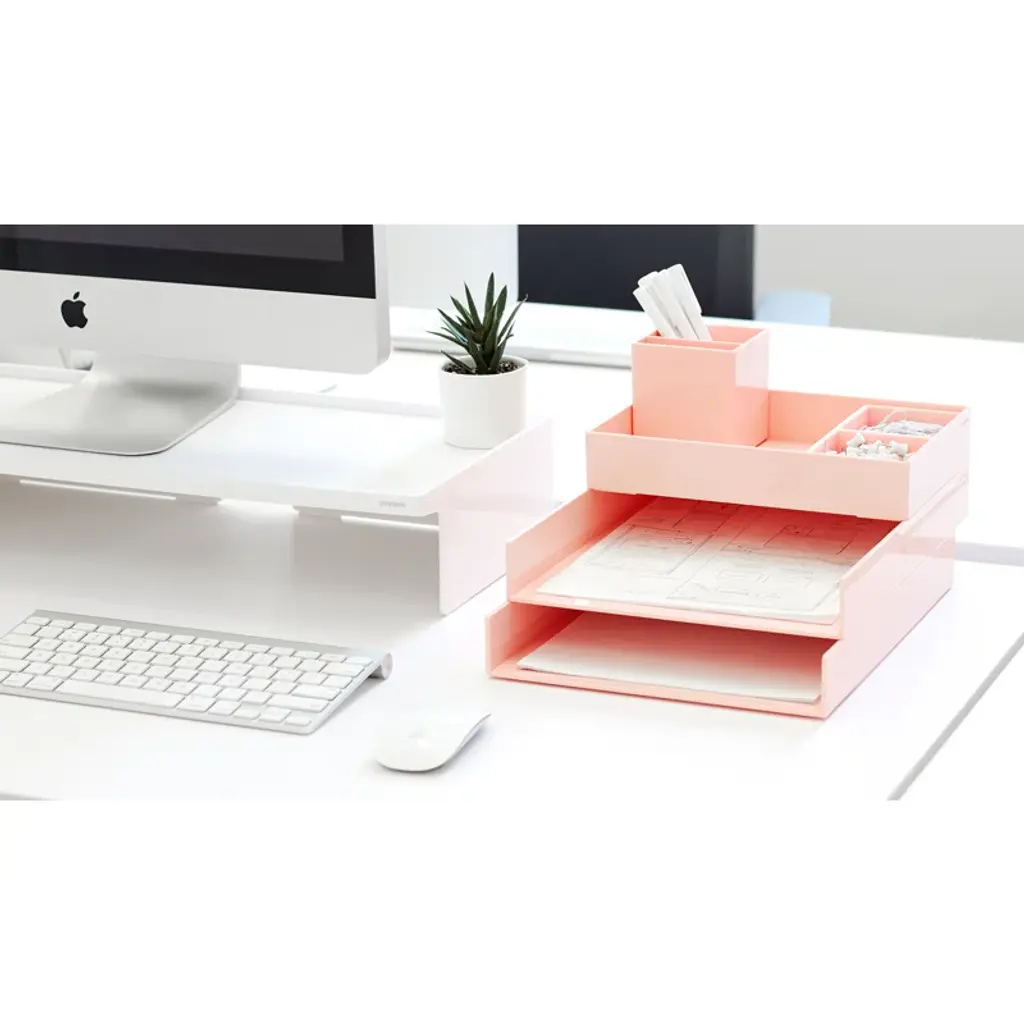 Keep your workspace neat + tidy with this modern desk organizer. Made of durable plastic and imported for quality, it's designed to hold all your essential office supplies in one convenient place. Stay organized and stylish with this must-have desk accessory.