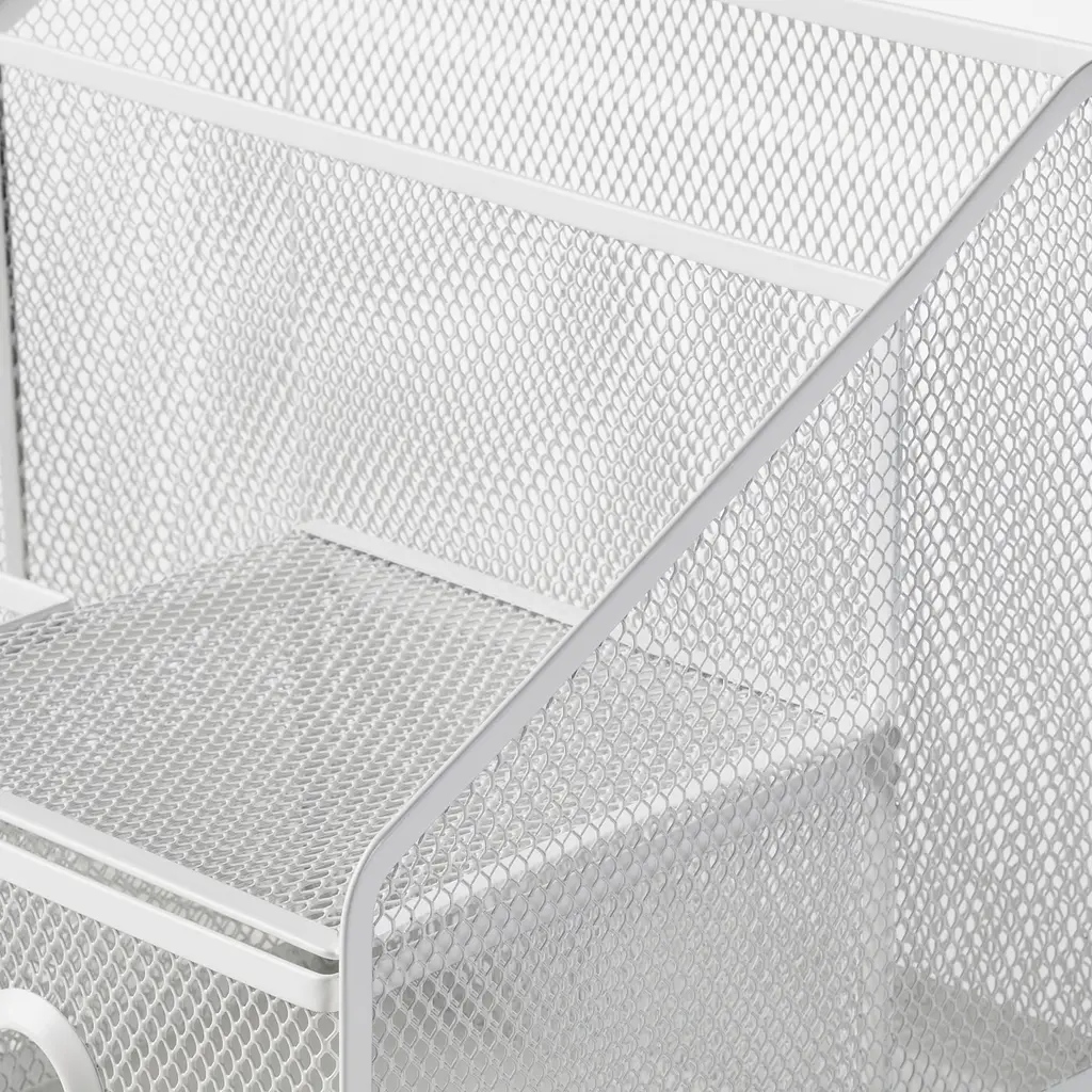 DRÖNJÖNS Desk organizer - white 9 ¾x7 ¾ ". Helps you keep everything from pens and stationery to USB sticks and chargers organized. Can be used anywhere in your home, even in damp indoor areas like the bathroom. Four soft plastic feet are included.
