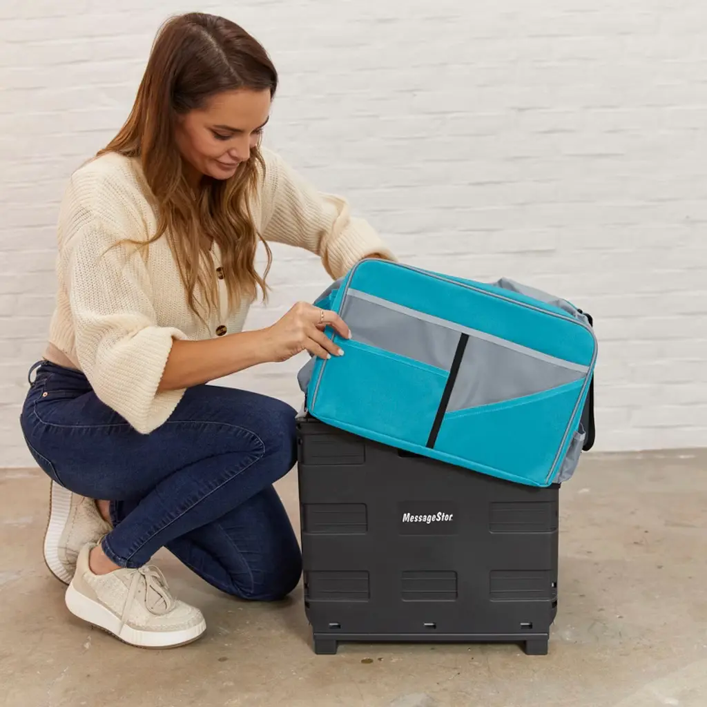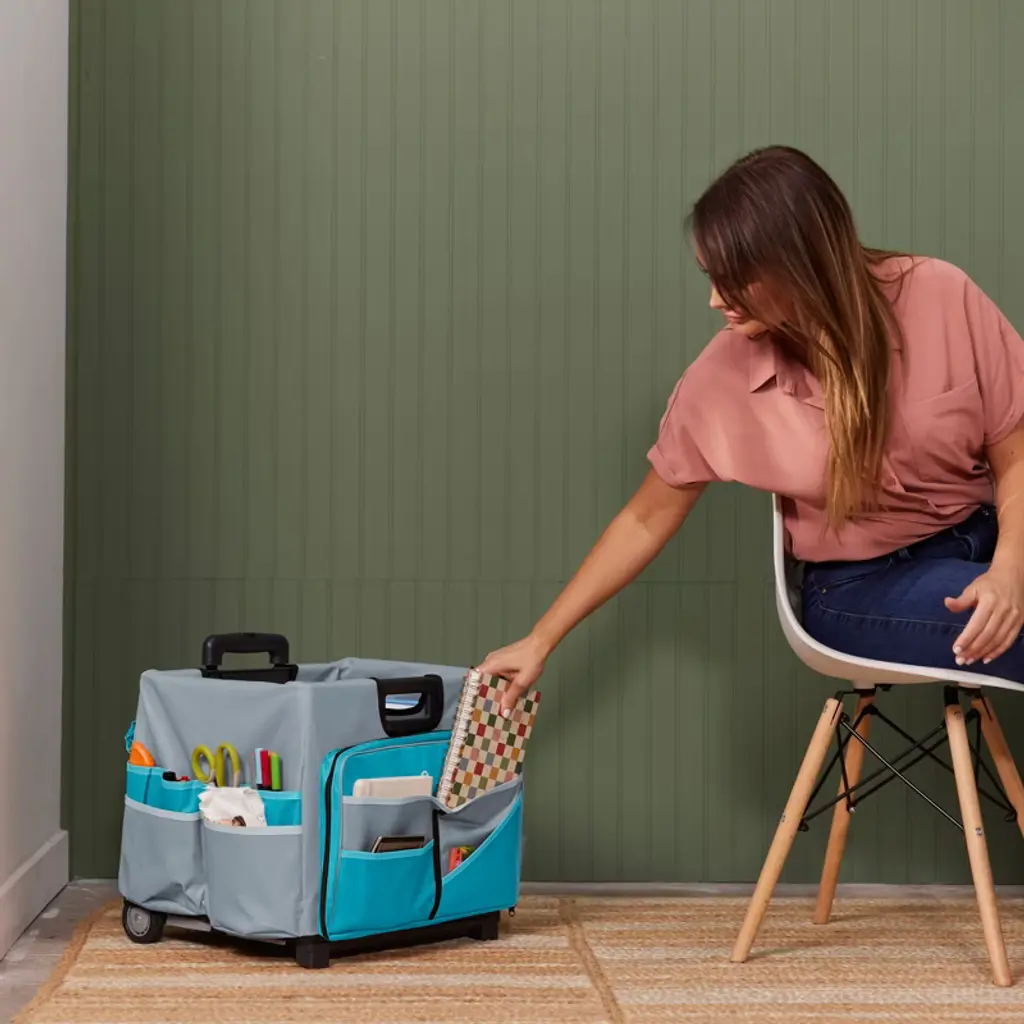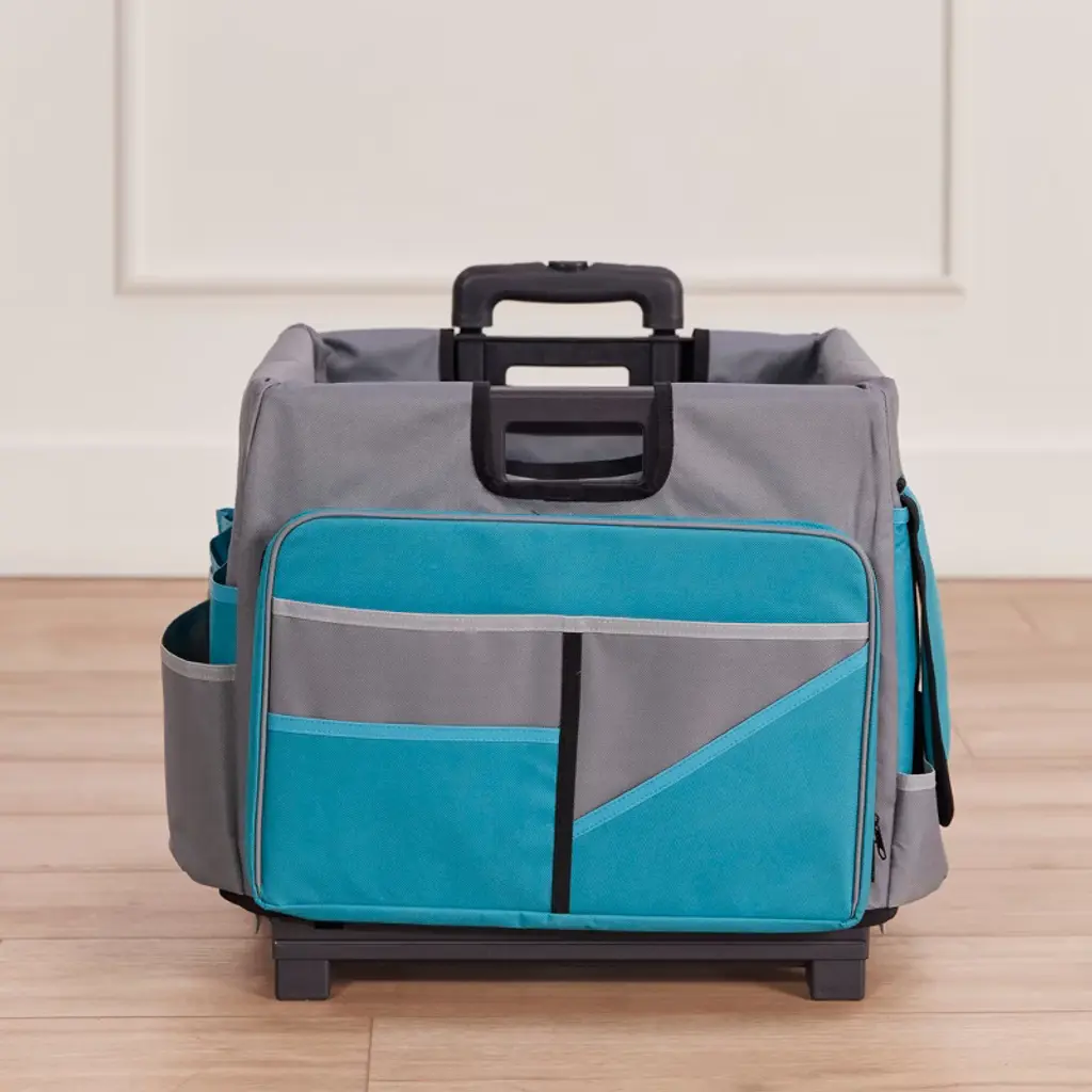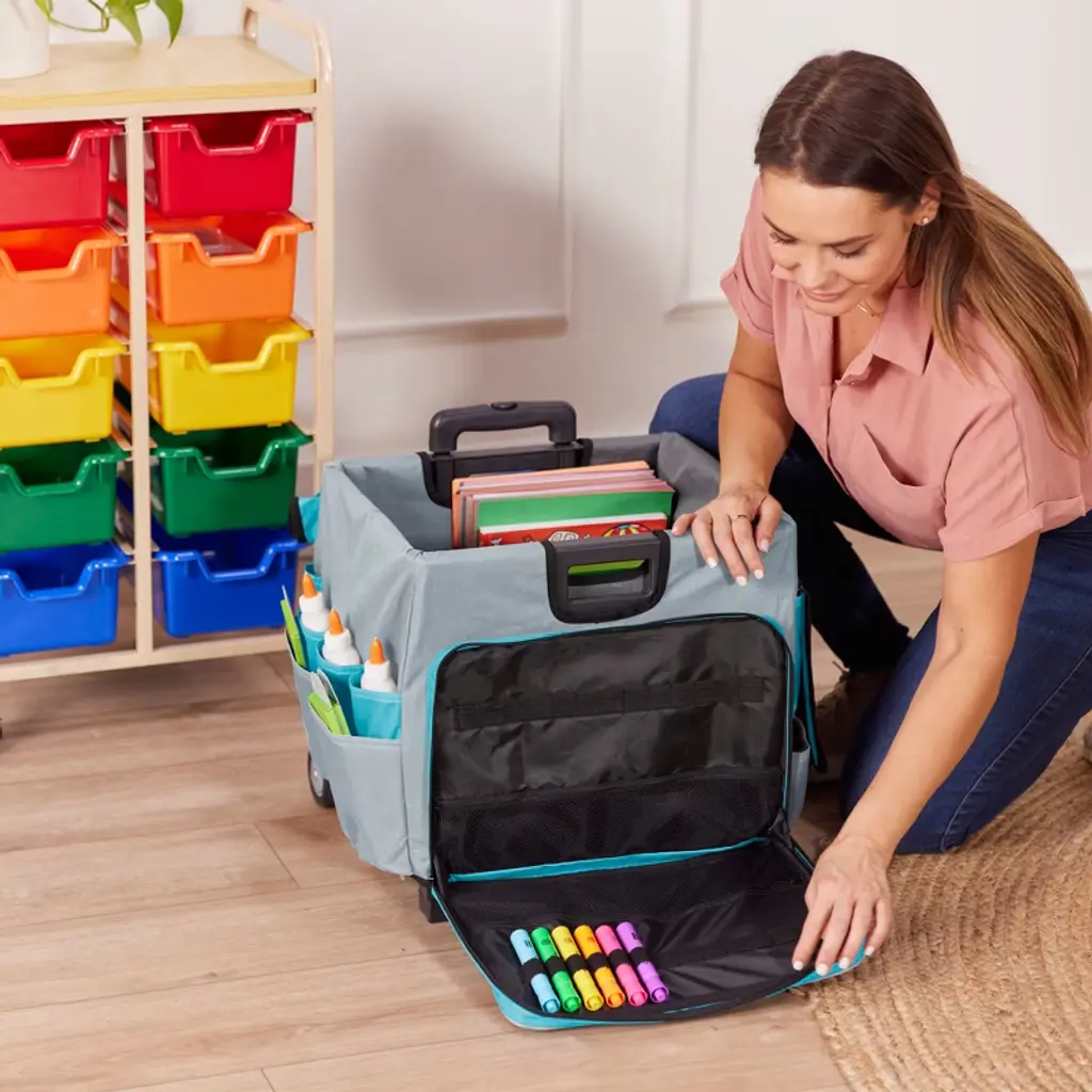 Ecr4kids Universal Rolling Cart With Canvas Organizer Bag, Turquoise/grey