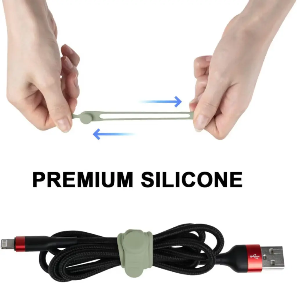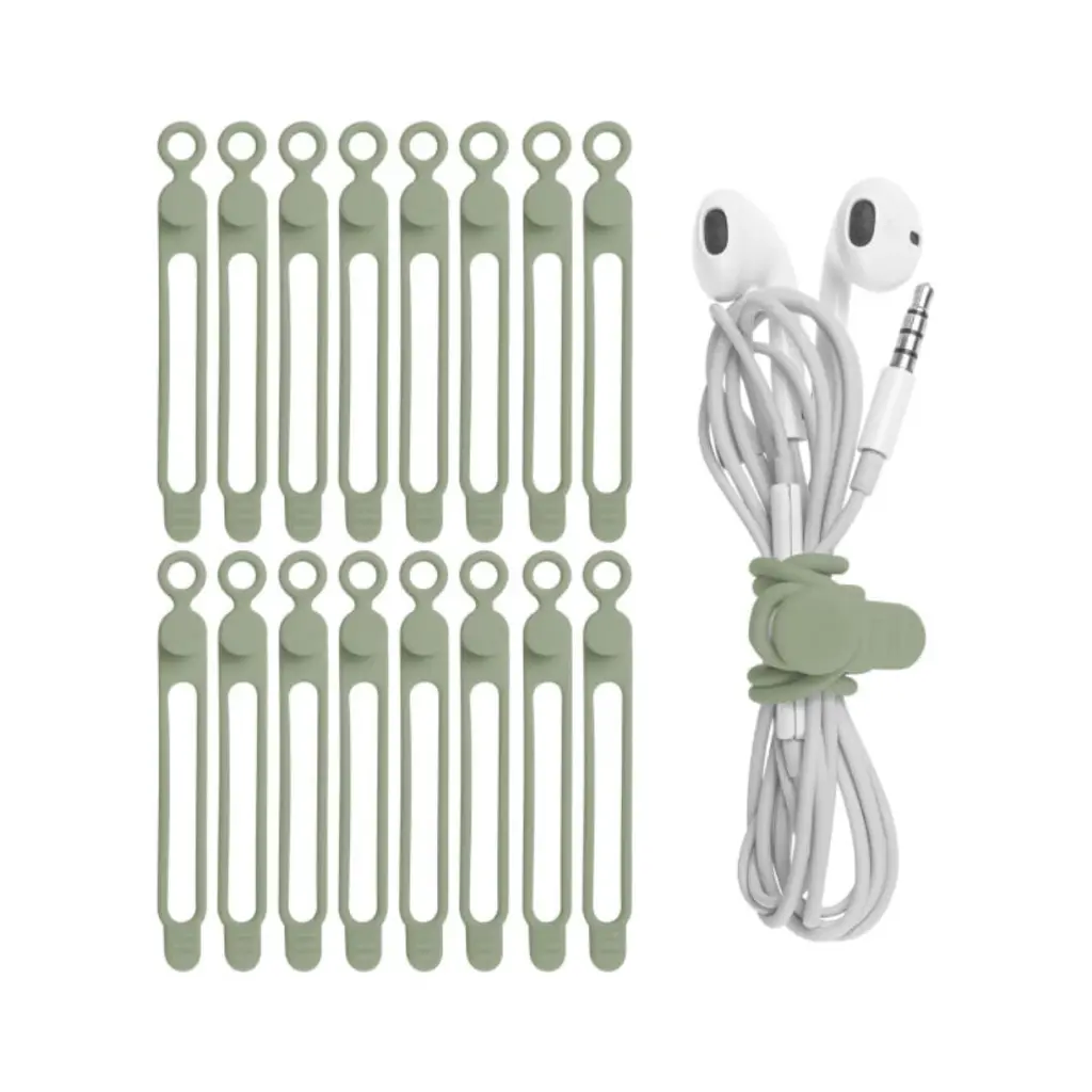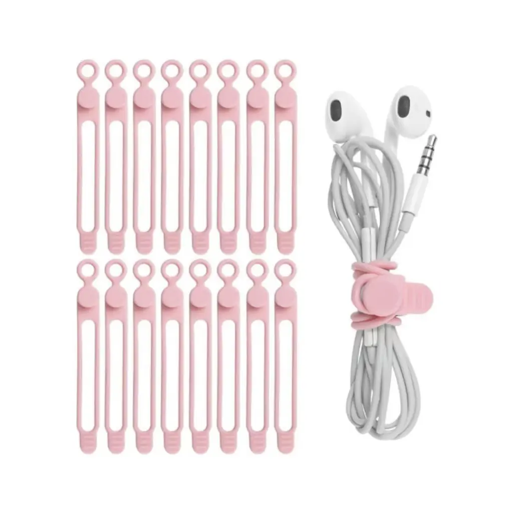 - These ties are made of high-quality silicone. And silicone material is wear-resistant, easy to clean and reusable. These excellent characteristics of silicone make our ties widely used. In addition to organize various cables, they can also seal pocket snacks, secure daily necessities, such as umbrellas without straps, and even help you secure hangers. Desk organizers and travel essentials. \n-?Our cable strap with a round hole design, not only can put all kinds of thick and thin wires, convenient storage, but also can hang up the tied wire to save space. Moreover, the design of buckle makes our cable straps easier to open and close quickly, and they don't come off easily. \n-?The length of this cable tie is 4.2 inch, more suitable for earphone cable, data cable, mouse cable, audio cable, network cable and so on. The special size is only designed for perfect fit in use, to bring you a comfortable experience. \n-?16 pcs in a pack, enough to get you through all the clutter in your life without fear of loss. Moreover, 4.2 inch in length, it's small and light enough that you can carry it without any burden. \n-?Dimensions:?8.07 x 5.75 x 1.34 in, 0.09 lb