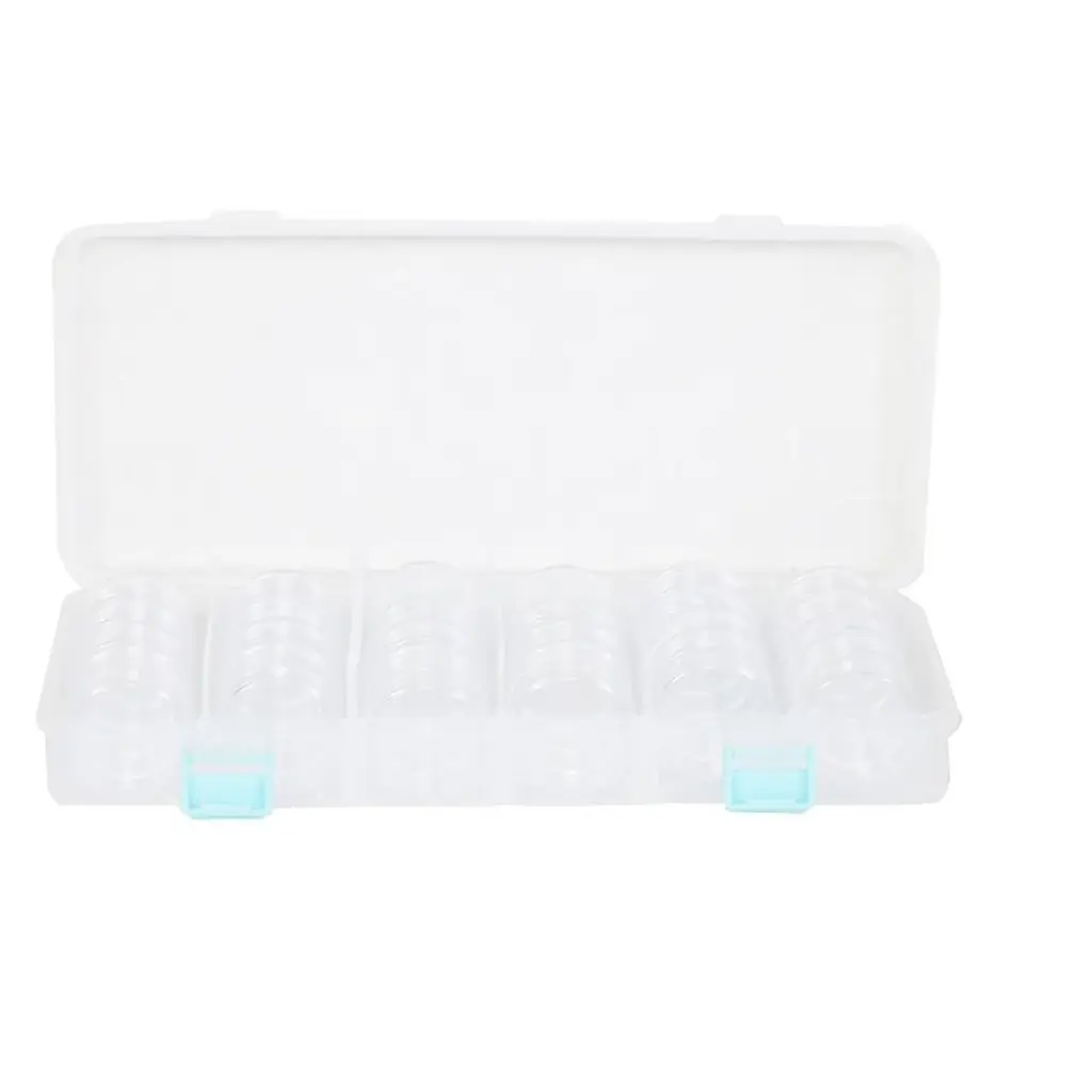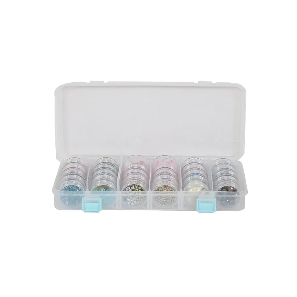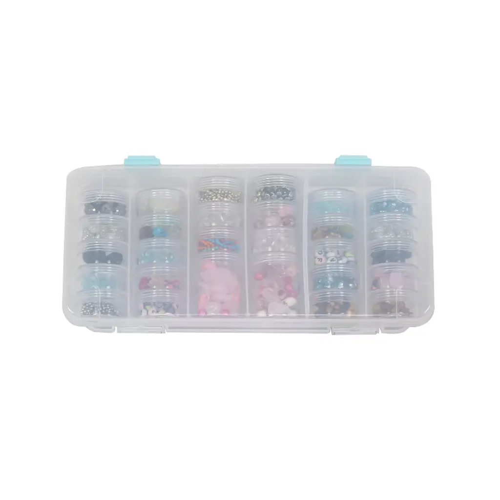 Organize every tiny treasure with the Everything Mary Clear Bead Storage Case with 28 Removable Jars. Designed by makers for makers, this slim, travel-friendly case keeps beads, findings, rhinestones, sequins, and small parts neat, visible, and ready to create. 28 screw-top jars: Removable mini containers keep small pieces separated and secure—no spills, no mix-ups. Clear & convenient: Transparent case and jars make it easy to see contents at a glance for faster crafting. Portable protection: Strong snap latches keep the lid closed tight so your supplies travel safely. Space-smart size: Slim profile measures 10" L x 5" W x 1.75" H—perfect for drawers, totes, or on-the-go creativity. Mix, match, reorder: Jars lift out for easy filling and sorting; arrange by color, size, or project. Durable build: High-quality plastic stands up to daily craft room use, classes, and travel. From jewelry making to scrapbooking, this case brings joyful order to the little things—so you can focus on what matters most: making it better.