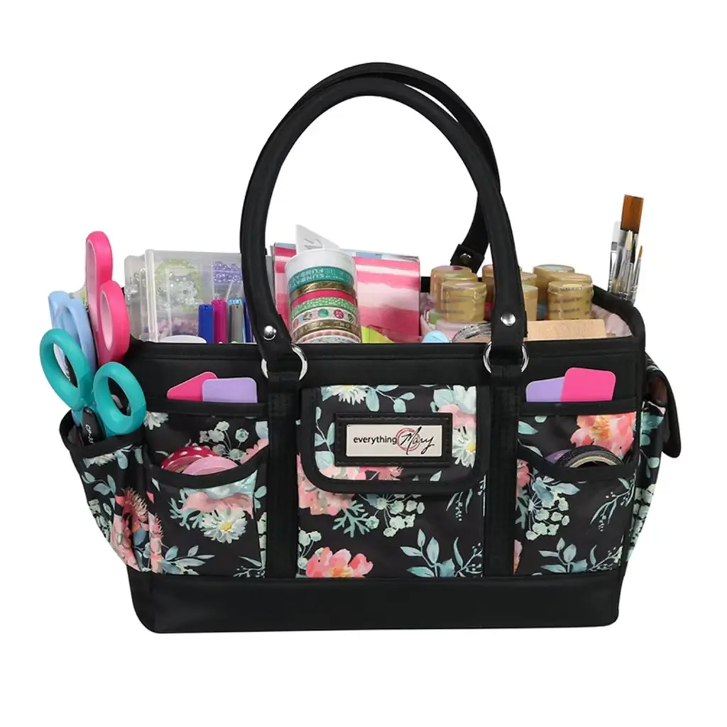Everything Mary Deluxe Store & Tote Craft Organizer, Black & Floral
