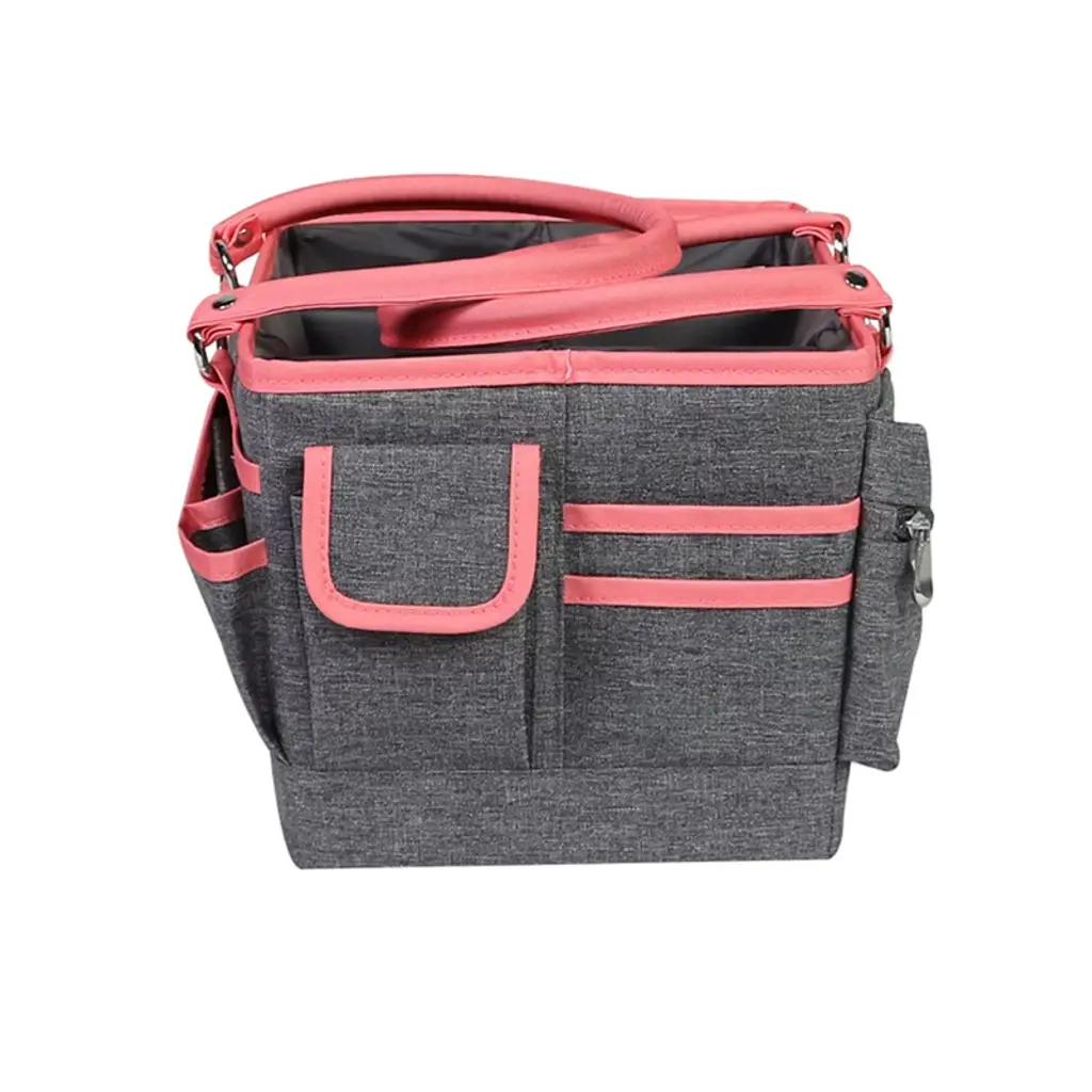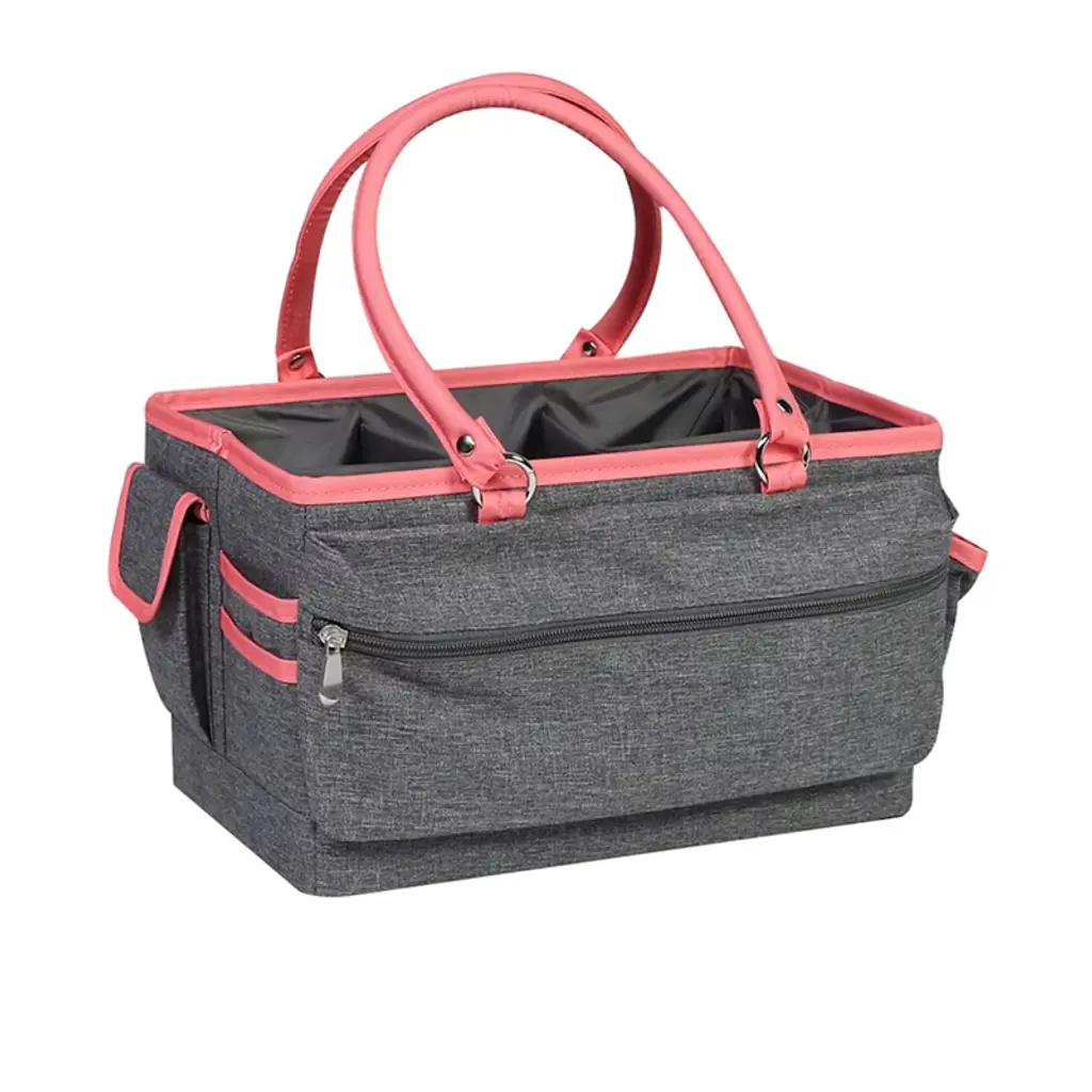 The Deluxe Store & Tote Organizational Bin comes in several timeless prints. Each tote is constructed from high quality 300 denier and feature embossed chrome logos and zippers, giving a classy and elegant look. This higher-end polyester ensures your craft supplies are safe. With two reinforced strong handles, you can bring this tote anywhere. There are different slots, pen loops, and pockets, providing multiple options for your home, garage, craft, or nursery.