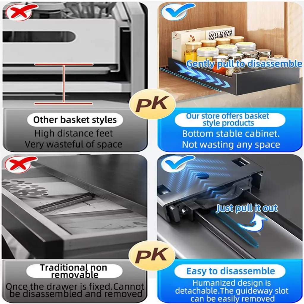 Experience the effortless organization can make with this carbon steel pull-out cabinet organizer. Built for strength and reliability, it holds up to 55lbs, ensuring secure storage for everything from heavy pans in the kitchen to essential toiletries in the bathroom. The smooth, quiet glide system means no more noisy searches or jammed drawers—each pull is seamless, making daily routines simpler and more enjoyable. Space is maximized thanks to its thoughtfully designed structure, keeping utensils, spices, or personal care items neatly arranged and always within reach. Installation is stress-free, too; no drills or nails required—just peel the adhesive, stick, and you’re ready to go, all without damaging your cabinets. This versatile organizer fits perfectly in kitchen cabinets, bathroom vanities, bedroom closets, laundry rooms, or even RVs, helping you maintain order and clarity wherever you need it most.