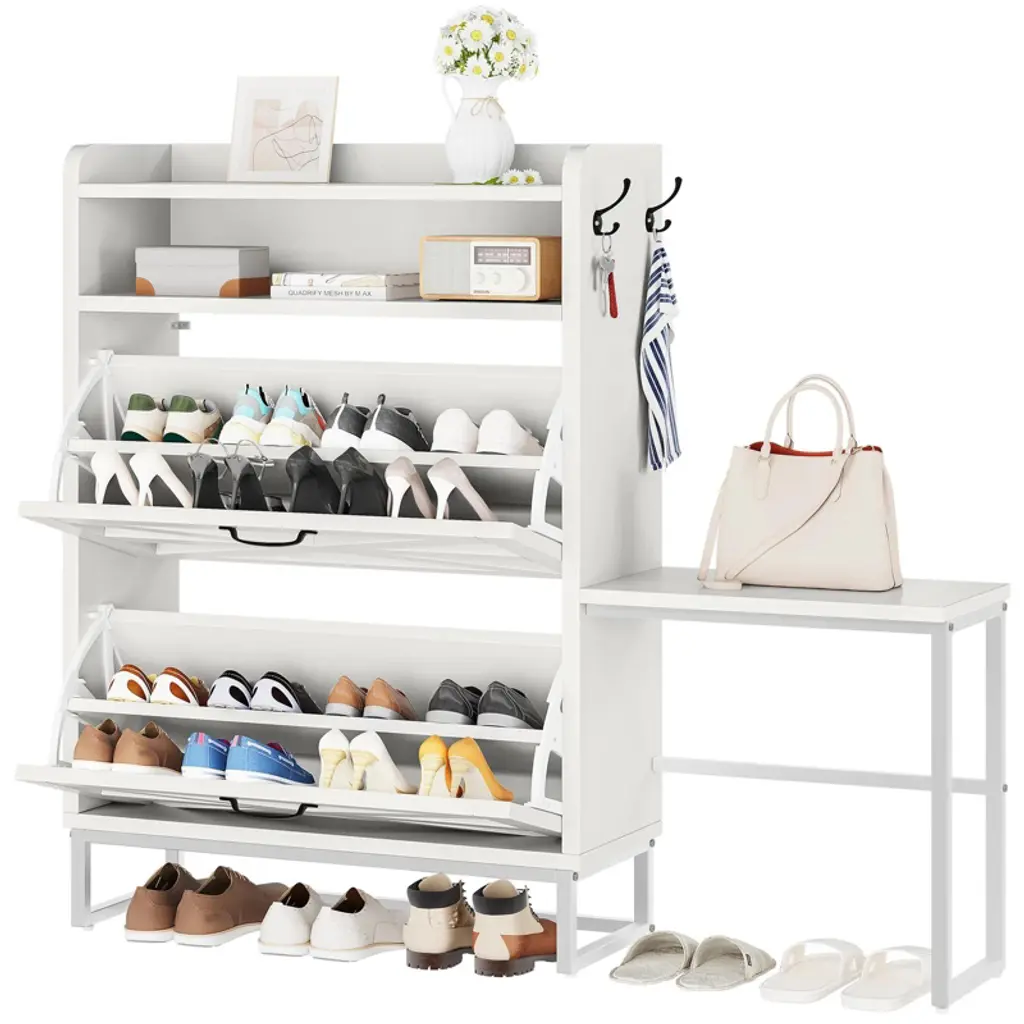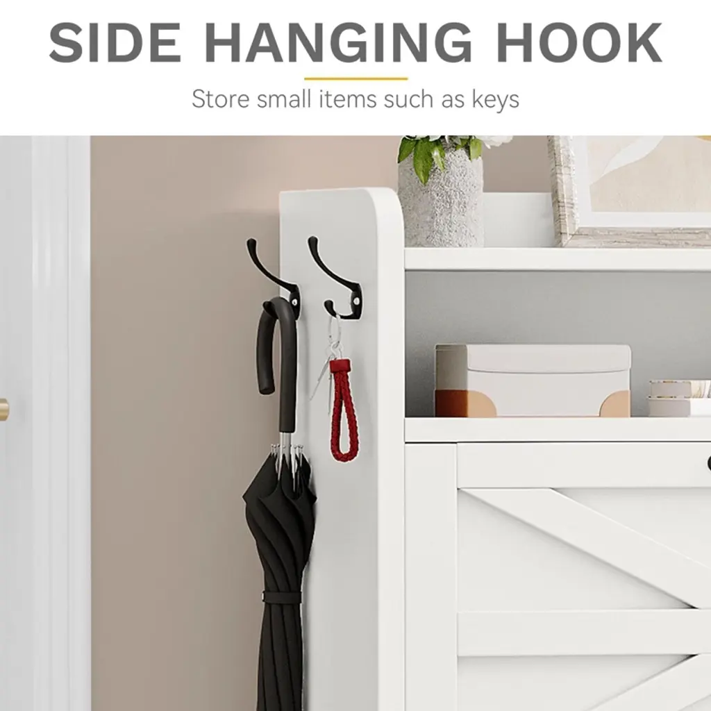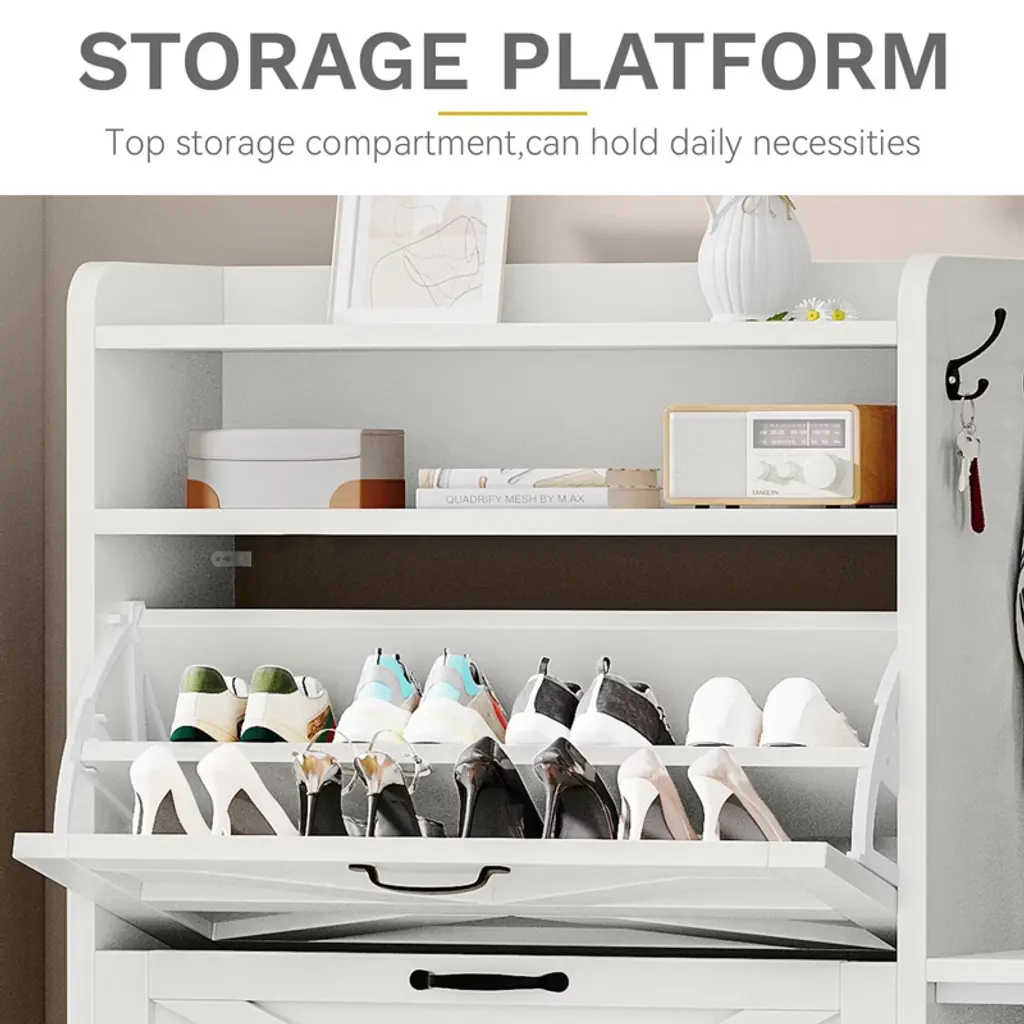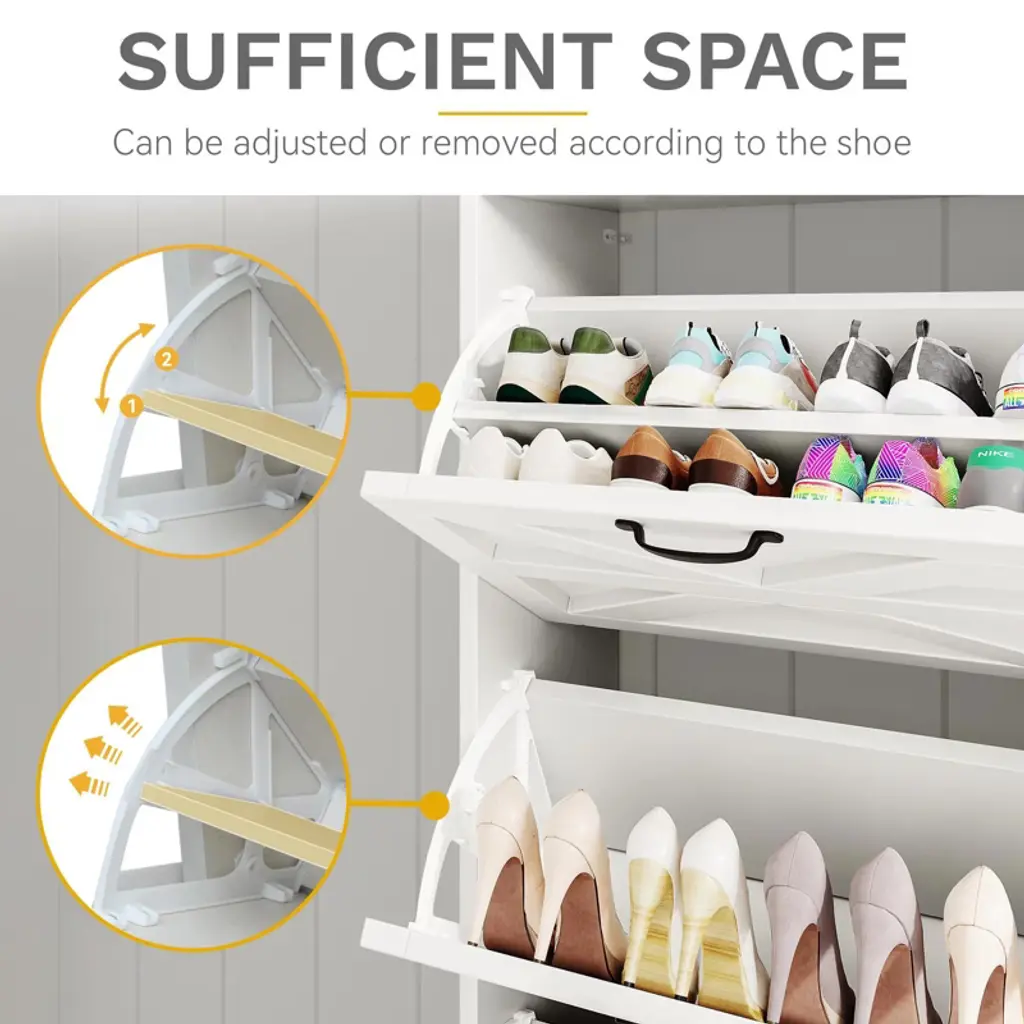 Farmhouse Shoe Storage Cabinet With 2 Flip Drawers Shoe Organizer For 16 Pairs