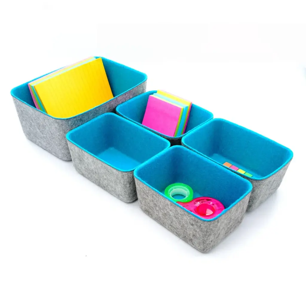 Premium high-quality 2 tones and colors felt, with small accessories, pen, sticky notes, pencil, art brush, jewelry, etc in the bin to fit in the drawer or on the desk. Organize each in a clean and modern lifestyle. Mix and match for any drawer size and storage need. Perfect for home, office, and desk use.