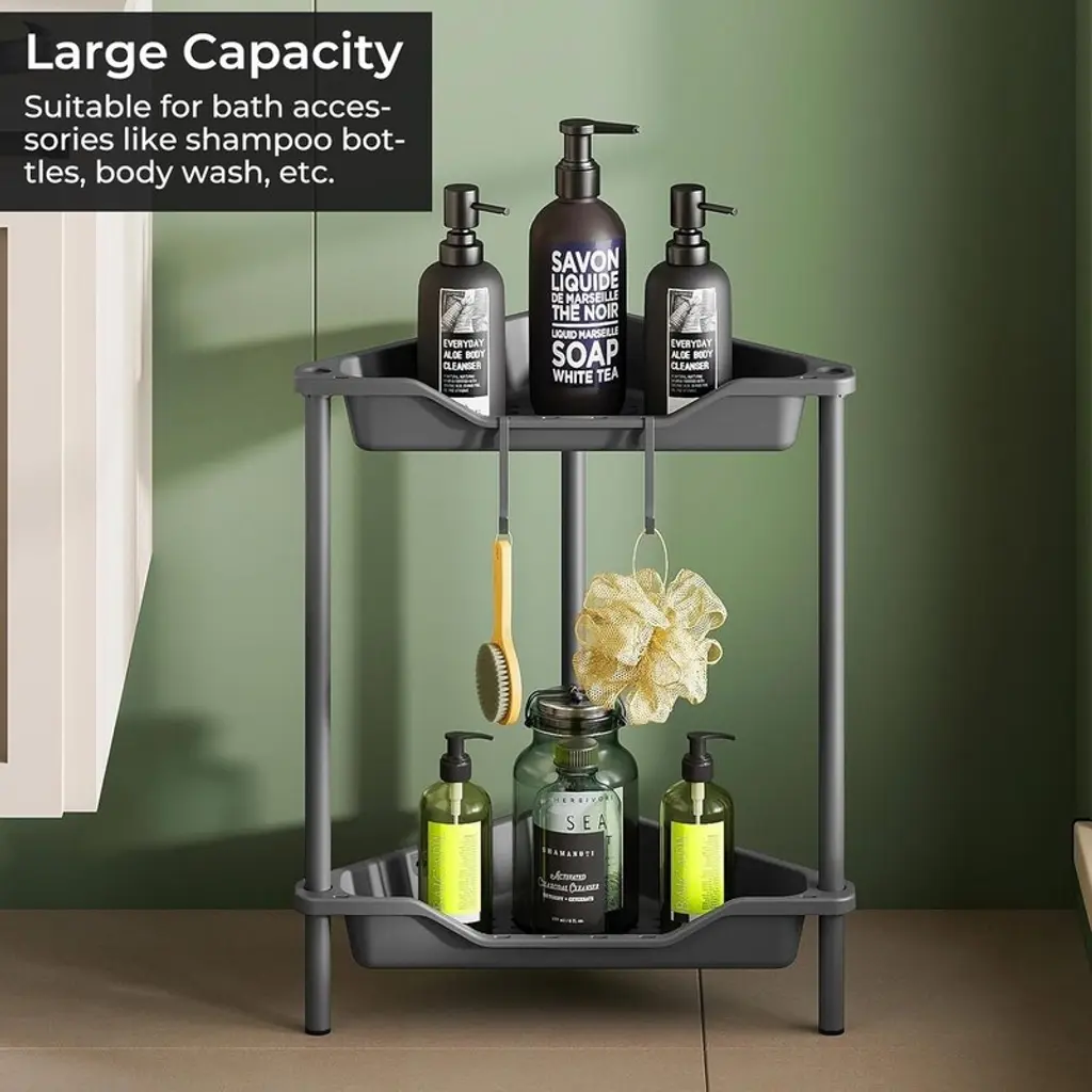 Floor Standing Corner Shower Caddy Organizer Plastic Metal Splicing Shelf Storage Rack For Bathroom - Rustproof - Grey,2tier
