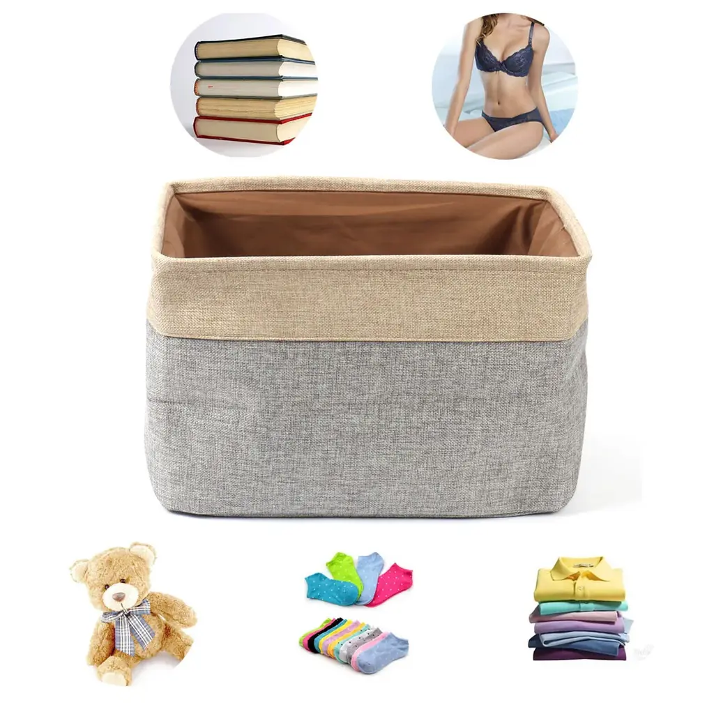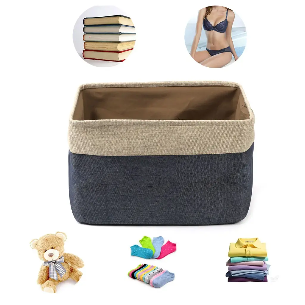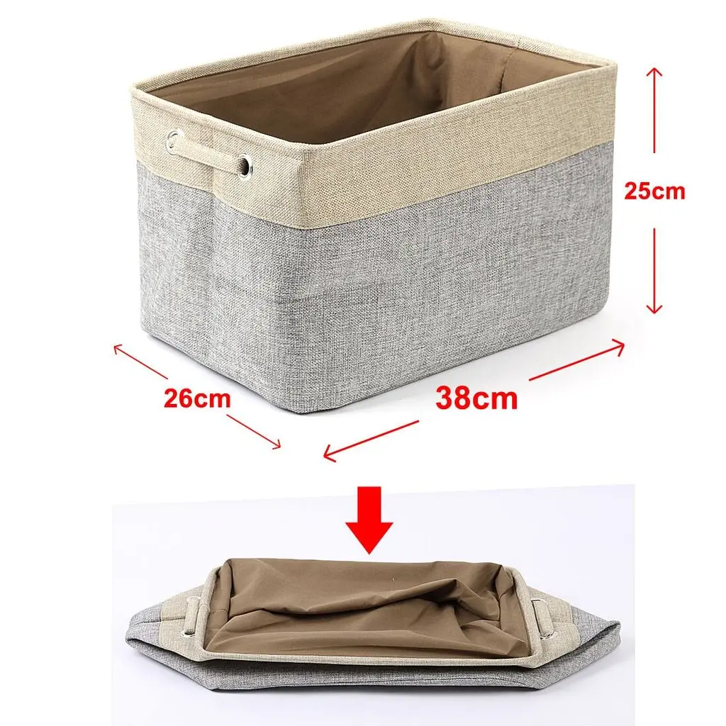 Features:- Made of durable linen &Thicken Environmental EVA- Steel frame on the top of edge very sturdy.- PE coating inside for waterproof and easy to stand up even if it is empty- Two handle design it is easy to take away.-Collapsible when not in use Size:S: 10.2" x 7.9" x 5.1"(L*W*H)M: 10.2" x 7.9" x 9.8"(L*W*H)L: 15.0" x 10.2" x 9.8"(L*W*H) Perfect For- Closet & room clothes storage Shelf organizers- Living room magzine book and media storage- Bathroom tissue and sundry storage- Beauty makeup and hair supplies storage- Toy plush or clothes storage- Laundry room storageLinen and towel storage Washing tips- Wipe clean only do not use abrasive cleaner.- Do not use washing machine to clean the bag it will damage the waterproof coating. Note:1.Please allow 2%-3% error due to manual measurement.2.The colors may have different as the difference display pls understand.