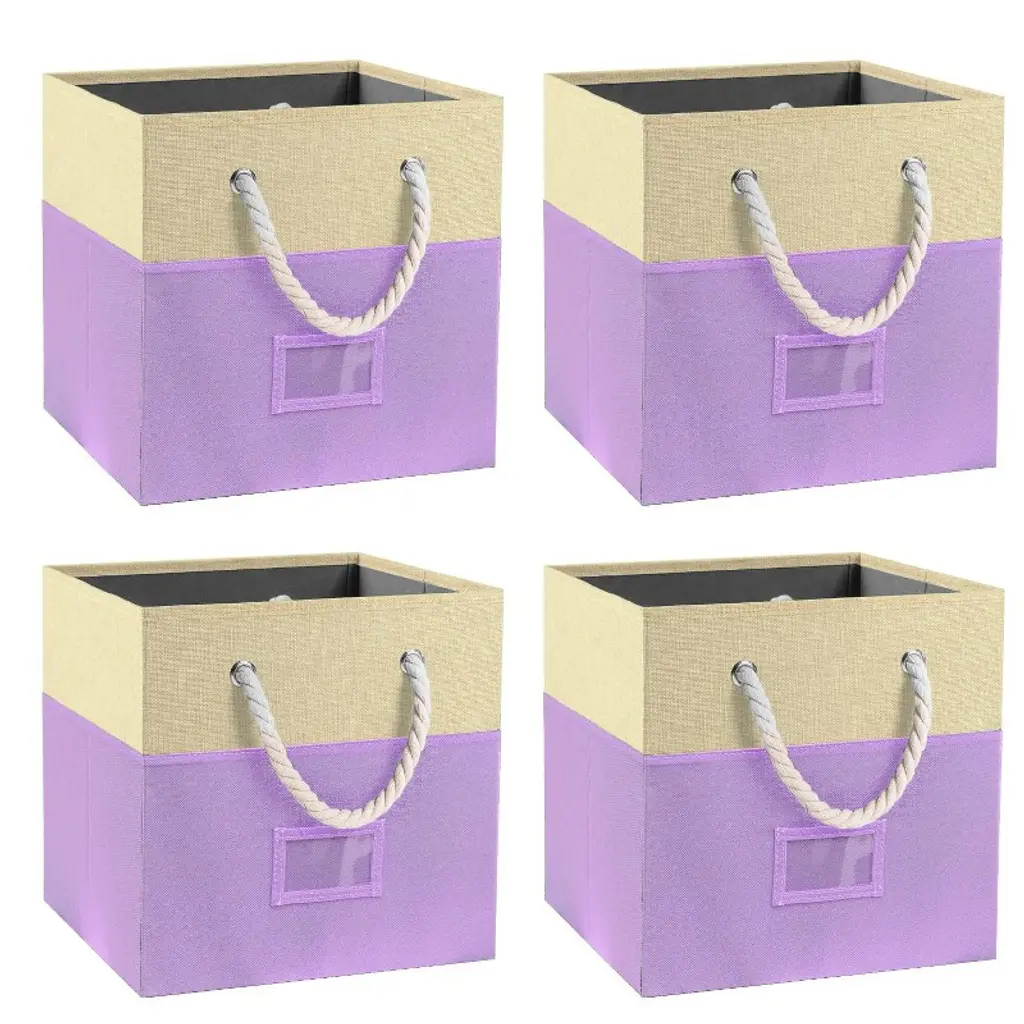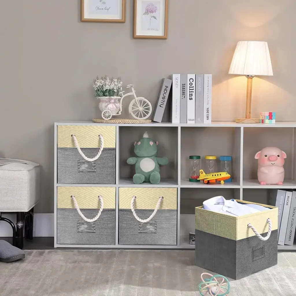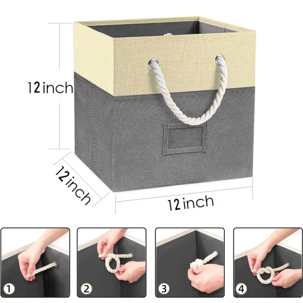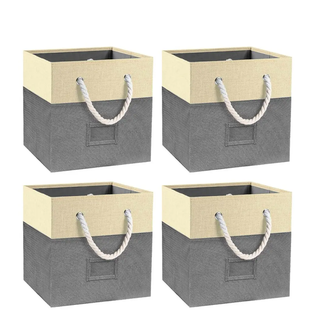 Fontoi 4Pcs Foldable Storage Bins, 12'' Cube Storage Cubes With Handles, Multi - Use Storage Organizer For Toys & Clothes, Beige & Grey, 12"*12"*12"