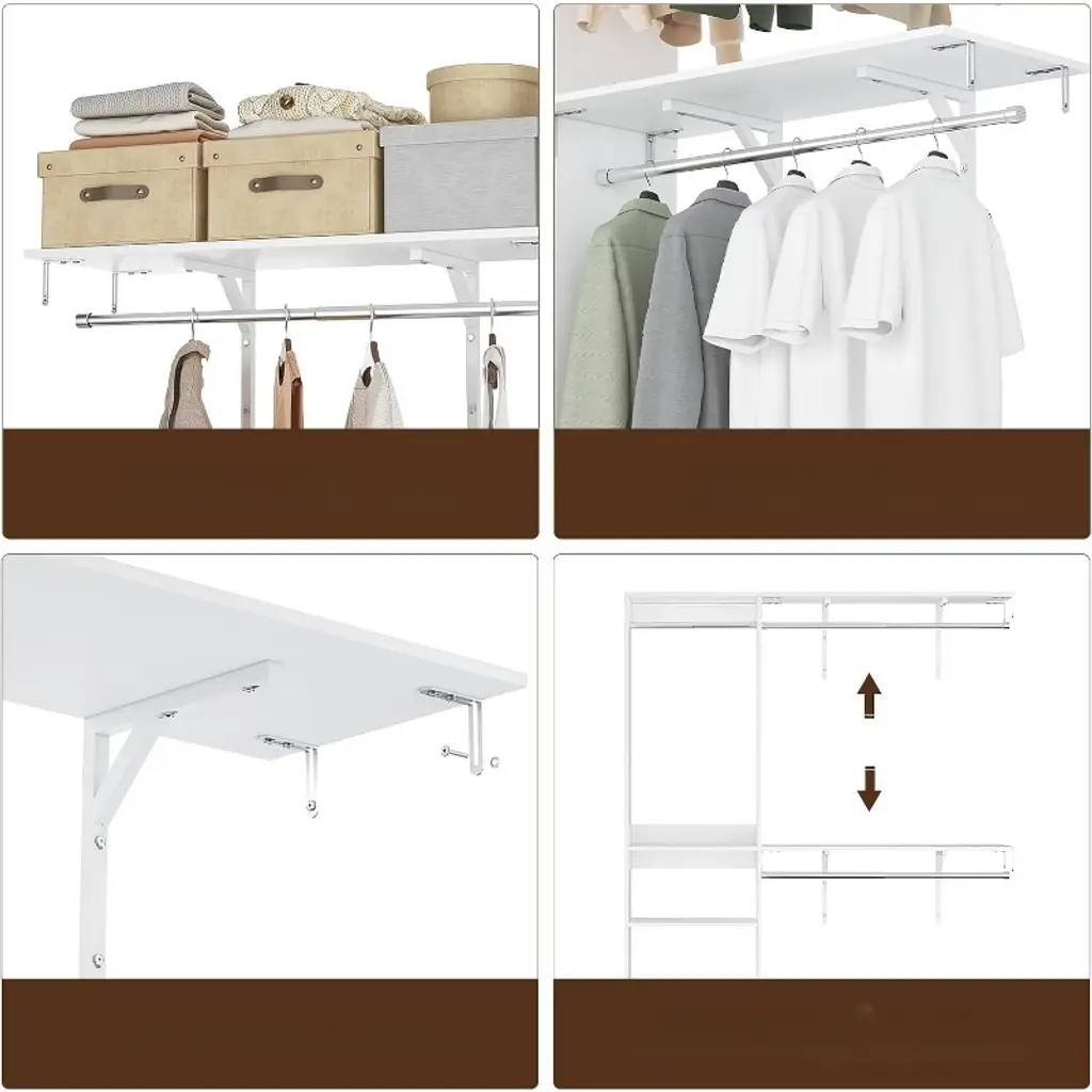 Fontoi Closet System Component Parts, Closet Organizer With 5 Shelves, Adjustable Closet With 4 Hang Rods For Entrance, White, 15.7"*75"*96"