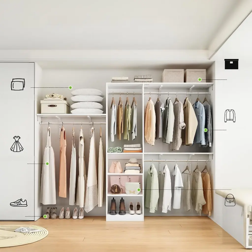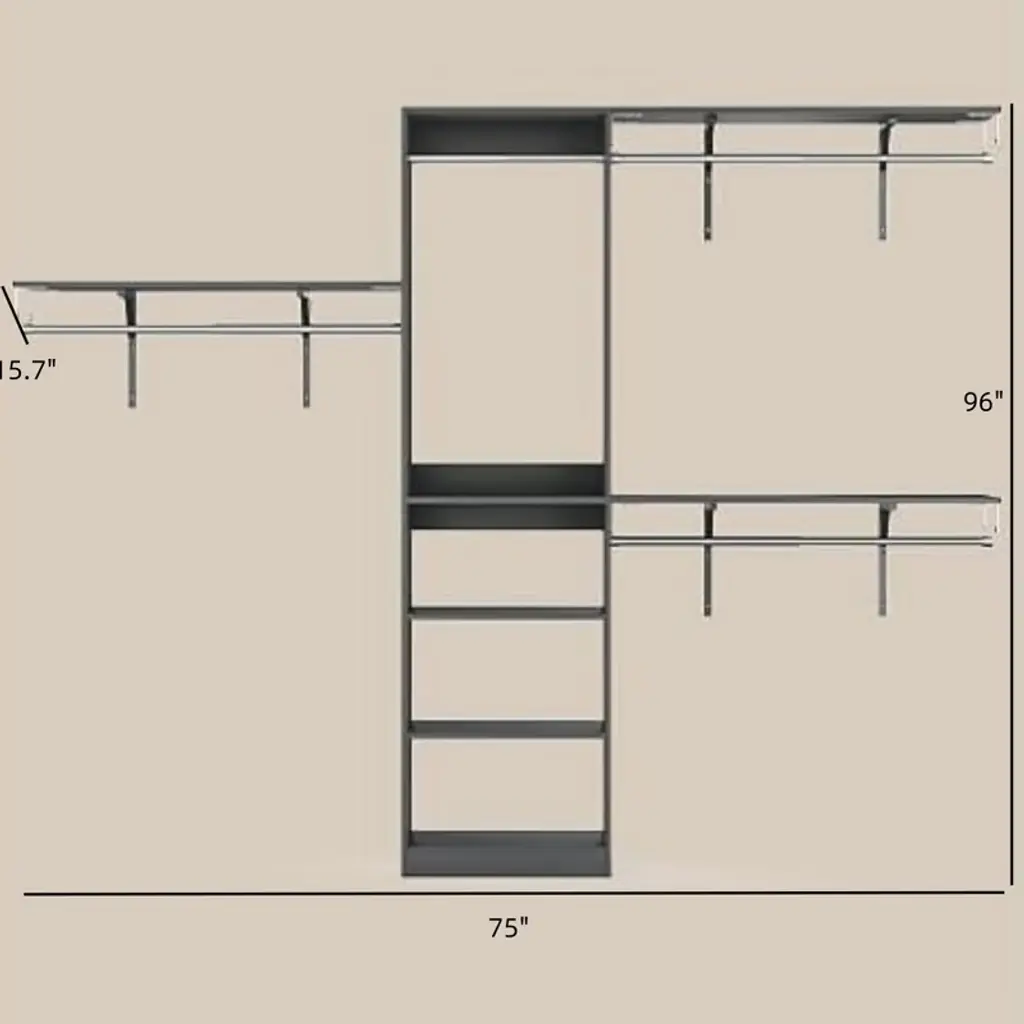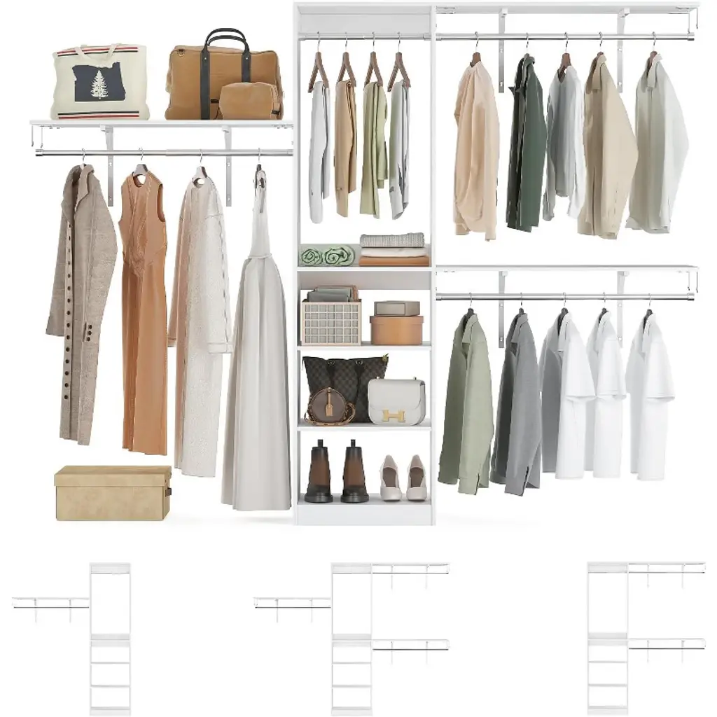 This closet organizer and storage system is a practical and stylish solution for your closet needs. Its flexible expandability allows for easy adaptation to different garment lengths and wardrobe sizes. The ability to customize walk - in closet setups with additional units and adjustable shelves offers organization possibilities. The effortless assembly process is a major plus. With ample storage capacity and a sleek aesthetic, it helps keep your closet tidy while enhancing its visual appeal.