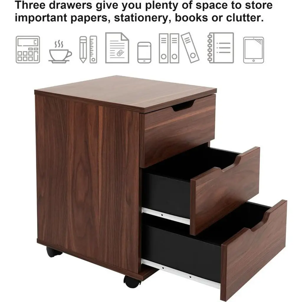 Fontoi File Cabinets, 3 Drawer Vertical Rolling Wood With Casters For Home Office, Neat Under Desk Organizer, Brown, 15.74"*15.74"*22.16"